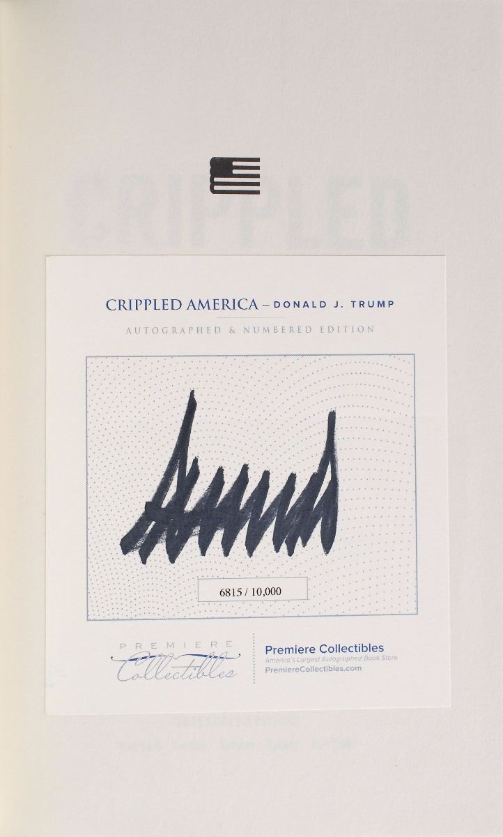 Signed book: Crippled America: How to Make America Great Again. Limited first edition, numbered 6,815/10,000. NY: Threshold Editions, 2015. Hardcover with dust jacket, 5.75 x 8.75, 193 pages. Signed on a bookplate affixed to a prefatory page in black felt tip. In very fine condition.