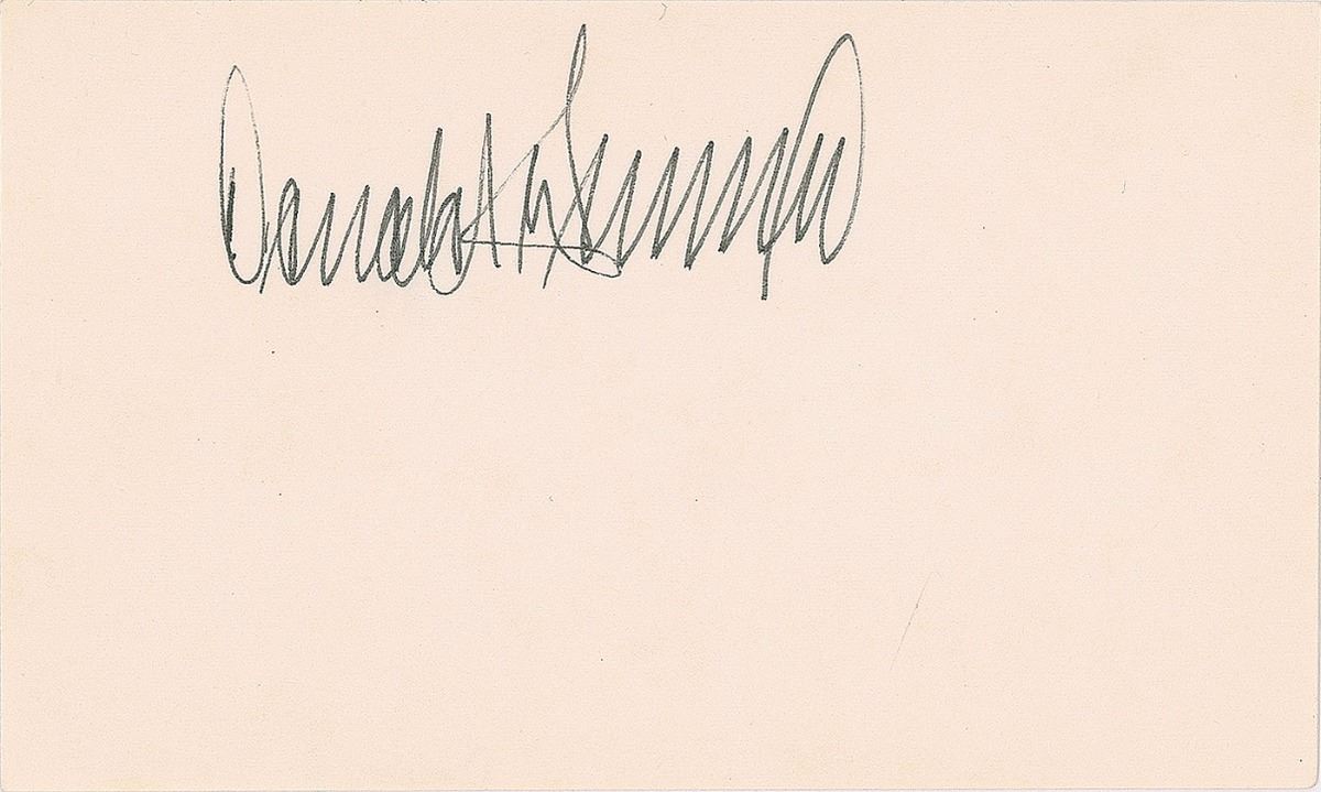 Circa 1980s felt tip signature, “Donald Trump,” on an off-white 5 x 3 card. In very fine condition. Originally obtained by in-person specialist Mike Wehrmann.