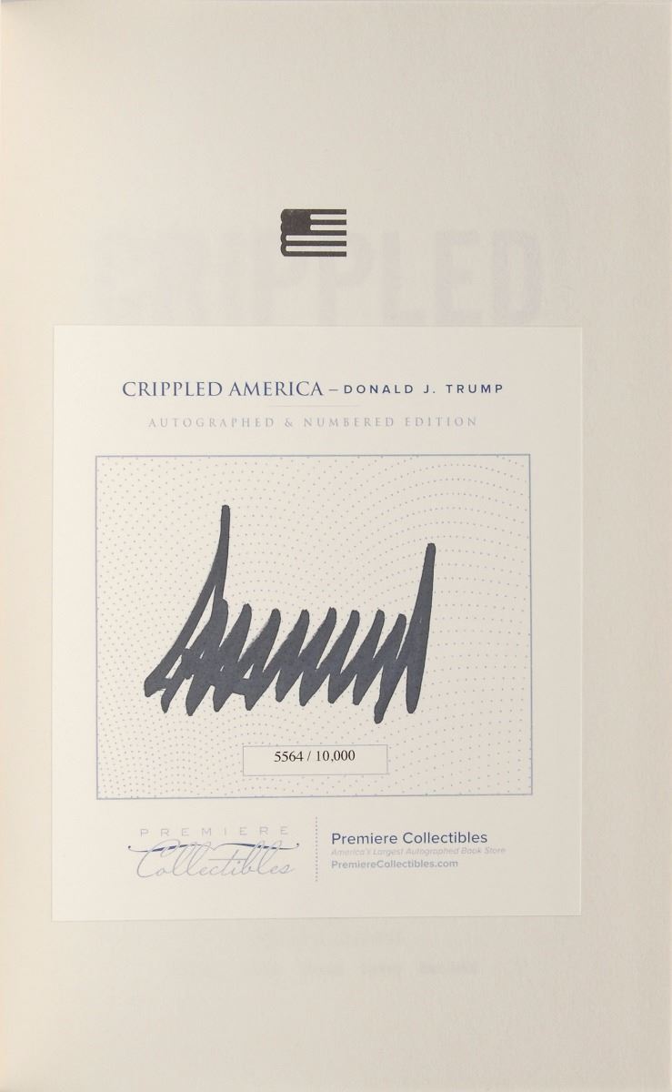 Signed book: Crippled America. Limited first edition, numbered 5564/10000. NY: Threshold Editions, 2015. Hardcover with dust jacket, 5.75 x 8.75, 193 pages. Signed on the numbered bookplate affixed to an opening page in black felt tip. In fine condition.