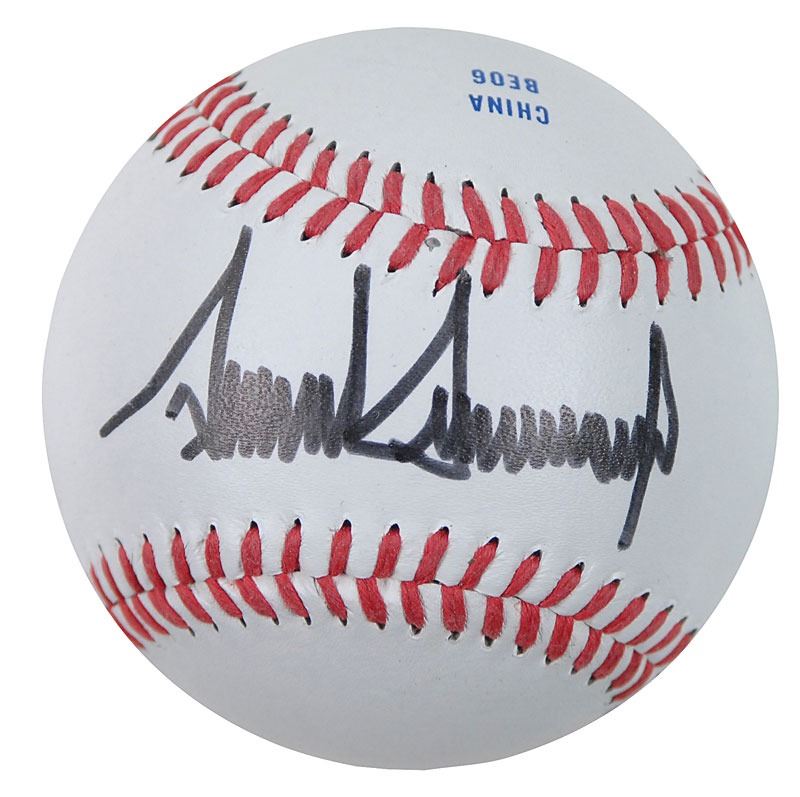 Rawlings Official League baseball signed in black felt tip on the sweet spot by Trump. In fine condition.