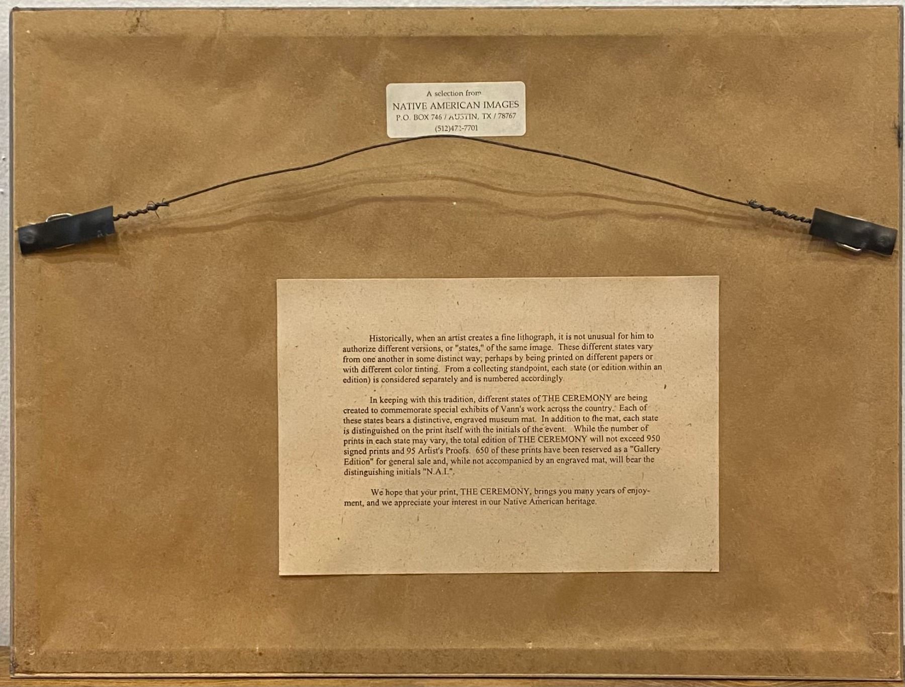Titled: The Ceremony, this is #238 of 650 of this Special Edition N.A.I done by Award Winning Cherokee Artist Donald Vann.
