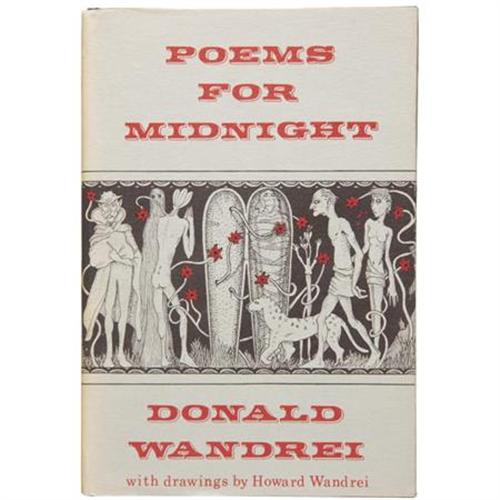 <B>Donald Wandrei. Four First Editions, One Signed</B></I>, including: <B><I>The Eye and the Finger</B></I></B></I>; <B><I>The Web of Easter Island</B></I></B></I>; <B><I>Poems for Midnight</B></I></B></I>; <B><I>Strange Harvest</B></I></B></I>. Sauk City, Wisconsin: Arkham House, 1944-1964. <BR>First hardcover editions. Four twelvemo volumes. <I>Poems for Midnight</B></I> is inscribed and signed on the title page by the author.<BR><BR>Black cloth with gilt spine titles. Overall, books and dust jackets are near fine to fine, except <I>The Eye and the Finger</B></I>, which is overall very good with some wear and toning. Born in St. Paul, Minnesota, Donald Wandrei (1908-1987) was a member of the H. P. Lovecraft "inner circle" and co-founded Arkham House with August Derleth. This lot includes all four of Wandrei's most well-known works. <I>From the Robert and Diane Yaspan Collection.</B></I><BR><BR><b>Shipping:</b> Books & Catalogs (<a target="_blank" href="http://www.heritageauctions.com/common/shipping.php">view shipping information</a>)
