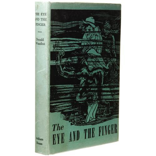 <B>Donald Wandrei:<I> The Eye and the Finger.</B></I></B></I> (Sauk City: Arkham House, 1944), first edition, 344 pages, jacket design by Howard Wandrei, black cloth with gilt titles, 12mo (5.5" x 7.5"), slight toning to pages, else fine in a slightly foxed unclipped jacket. Wandrei along with August Derleth started Arkham House publishing. <I>From the Ventura Collection.</B></I><BR><BR><b>Shipping:</b> Books & Catalogs (<a target="_blank" href="http://www.heritageauctions.com/common/shipping.php">view shipping information</a>)