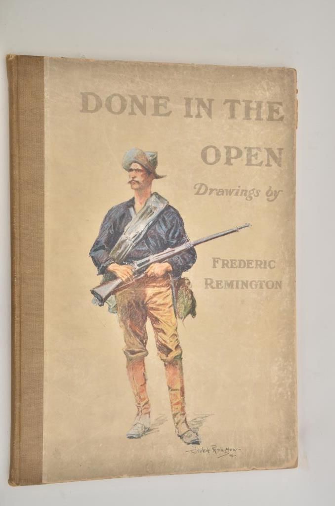 “Done In The Open” oversized hardback dated 1902, Drawings by Frederic Remington, in overall very good condition. Est.: $100-$150.