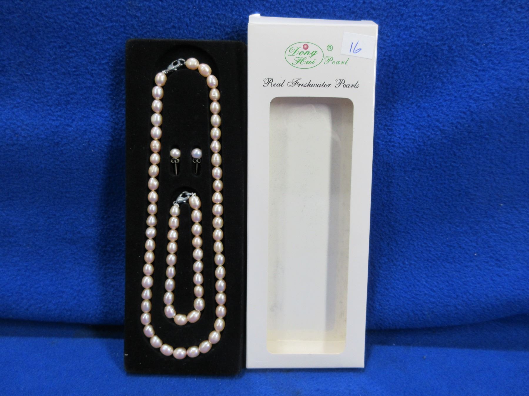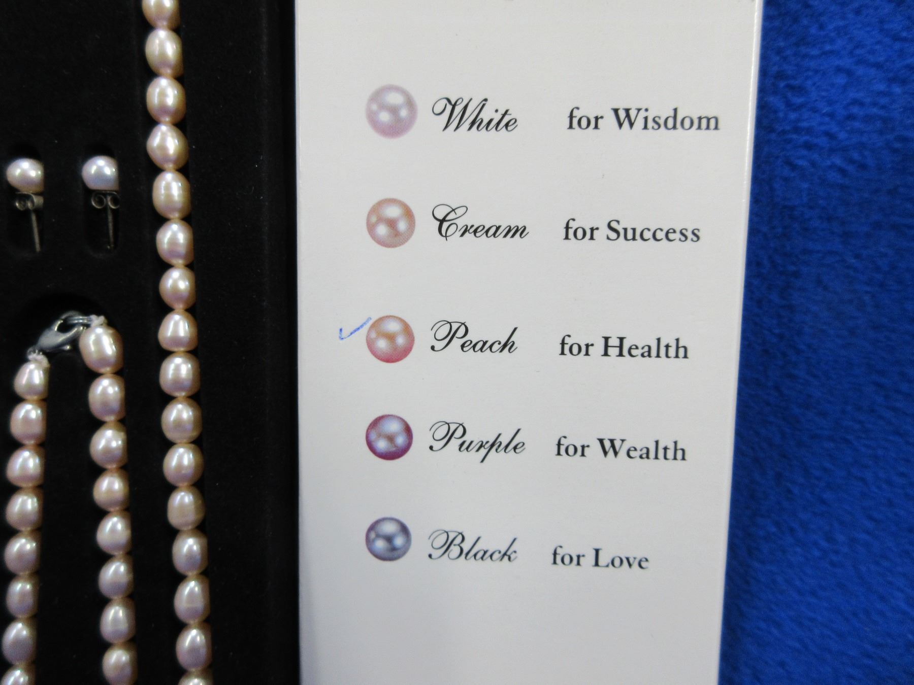 Dong Hui Pearl - Peach Real Fresh Water Pearl Set - Includes 16" Necklace, 7" Bracelet and Earrings