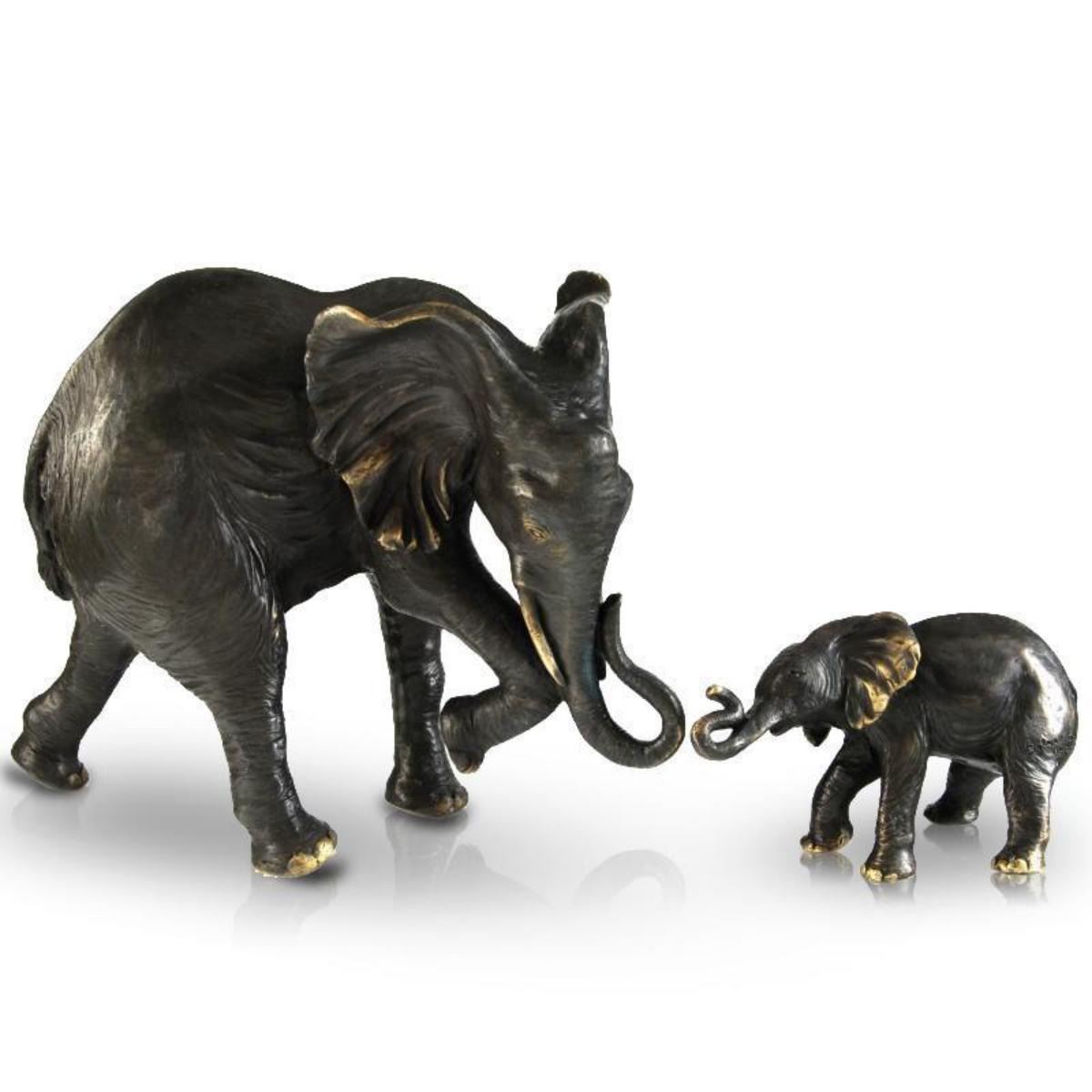 "Mother and Child" is a limited edition bronze two piece sculpture set, numbered and signed by Donna Mason-Adams. Includes Certificate of Authenticity. Large elephant measures approx. 13" (width) x 5" (depth) x 11" (height), 16 lbs. (weight). Small elephant measures approx. 9" (width) x 3" (depth) x 5" (height), 3 lbs. Reference #: 227873.