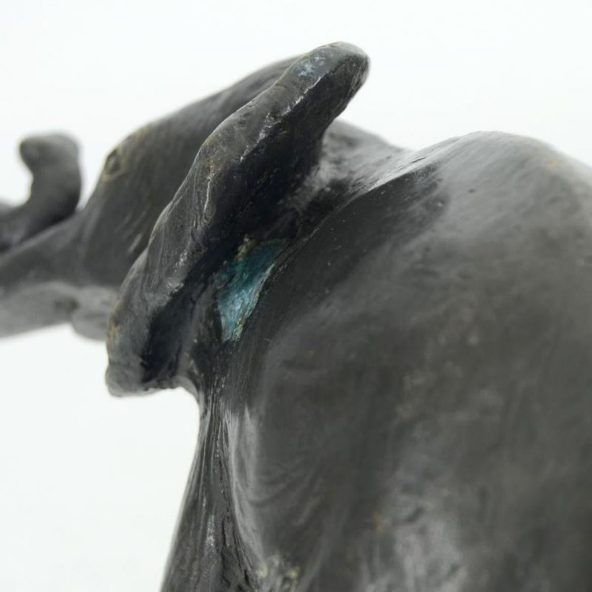 "Mother and Child" is a limited edition bronze two piece sculpture set, numbered and signed by Donna Mason-Adams. Includes Certificate of Authenticity. Large elephant measures approx. 13" (width) x 5" (depth) x 11" (height), 16 lbs. (weight). Small elephant measures approx. 9" (width) x 3" (depth) x 5" (height), 3 lbs. There may be some small areas with a slight white coloring due to oxidation, which commonly occurs with bronze pieces. This is normal and superficial. The inner layers of the object are protected from deterioration. Reference #: 236393.