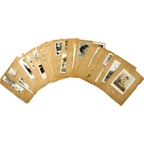 <B>Donnie Dunagan Fan Letters and Photos.</B></I> After Donnie Dunagan won fame in such films as <I>Mother Carey's Chickens,</B></I> <I>Son of Frankenstein</B></I> and <I>Bambi,</B></I> fan mail came to him in Hollywood from all over the country. Many of the fans, in addition to writing letters, sent photographs, and here are 16 pages (32 sides) of pictures from Donnie's fans all over the country, from the years 1938 to 1940. The pictures are compelling - people posing in elegant dresses or costumes or bathing suits, with siblings or pets or favorite toys, many of the pictures signed by the fans. Donnie's family added the names and hometowns of the fans under the pictures, and while many celebrities would have quickly discarded such mail, these pictures have survived nearly 70 years in Donnie's personal collection. Page size is approx. 7" x 9" with some chips and tears in the paper; size of photos varies. This collection is a true curio, and a rather touching example of how fans wanted to share their sentiments, and images, with the people they admired on movie screens. <I>From the Donnie Dunagan Archive</B></I>.<BR><BR><b>Shipping:</b> Flat Material, Small (<a target="_blank" href="http://www.heritageauctions.com/common/shipping.php">view shipping information</a>)