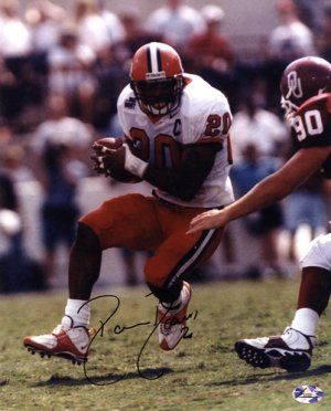 Donovin Darius played at Syracuse University, setting the team record for tackles by a defensive back with 379. He had a well deserved reputation as one of the dirtiest hitters in college football. He was a Big East All-Conference player in 1995 and 1996. Donovin Darius has hand autographed this Syracuse Orangemen 8x10 Color Photo. FI Hologram and Certificate of Authenticity from Athlon Sports.