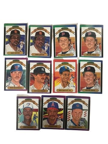 This collection of 11 Donruss Diamond Kings baseball cards showcases a royal court of baseball talent. Headlining the group is the "Kid" himself, Ken Griffey Jr., alongside batting champion Tony Gwynn (featured twice!). Pitching prowess is well-represented with three cards of Cy Young winner Frank Viola. Also included are fan favorites like the consistent Don Mattingly, slugger Fred McGriff, and rising stars Pete Incaviglia, Johnny Ray, and Mark Grace. This lot offers a glimpse back at a golden era of baseball, highlighting some of the game's most celebrated players.
