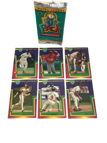Fun pack includes card of: John Kruk - Phillies, Lee Smith - STL, George Brett - Royals, Tony Peña - Red Sox, Craig Biggio - Astros, Jose Offerman - Dodgers