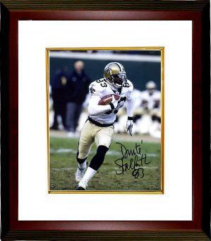 Donte Stallworth was selected by the New Orleans Saints in the first round (13th overall) of the 2002 NFL Draft. He made his NFL debut versus the Tampa Bay Buccaneers on September 8. He caught eight touchdown passes in 2002, his rookie year, but saw less action the next season. As a full time starter in 2004, he had 767 receiving yards and five touchdowns. In 2005, he recorded a career-high 70 receptions for 945 yards with seven touchdowns. Donte Stallworth hand autographed New Orleans Saints 8x10 Color Photo. Certificate of Authenticity from Athlon Sports. Custom White Mat and Premium Mahogany Color Frame.