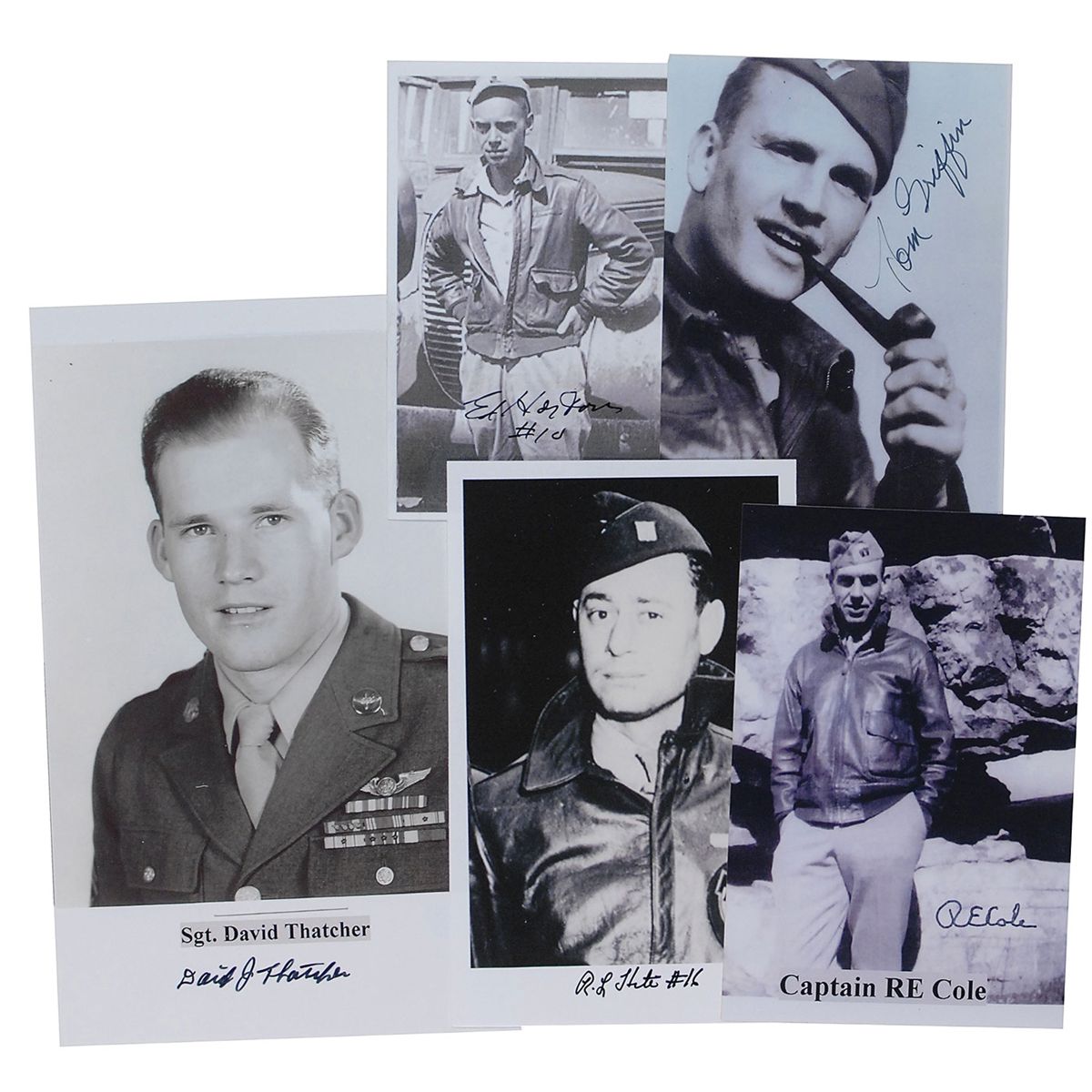 Five signed photos, ranging in size from 3.75 x 5.25 up to 5.25 x 8.5, various finishes, each signed in black felt tip by the crew member pictured. Signers are: David J. Thatcher, Ed Horton, R. E. Cole, Robert L. Hite, and Tom Griffin. In fine condition.