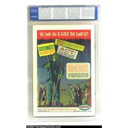 Doom Patrol #86 (DC, 1964) CGC NM 9.4 Off-white pages. Here's the first issue of DC's mutant team Doom Patrol, continuing the numbering from My Greatest Adventure. There's a one-page origin and the artwork, including the cool gorilla-with-a-gun cover, is by Bruno Premiani. This copy is fresh and sharp, with superb color and gloss. There is currently only one copy of this issue that has been graded higher by CGC. Overstreet 2003 NM 9.4 value = $130. Important notice: Heritage usually auctions material at the rate of 200-250 lots per hour. On some occasions eBay Live bid software or the Internet may not be able to keep up with the pace of the auction. We recommend placing a realistic absentee bid now as insurance to avoid disappointment. Occasionally the auctioneer may eliminate or reject an eBay Live bid, and the auctioneer may also reopen a lot after the close of the eBay live bidding (usually because we missed an audience bid), and may reject your bid even if it shows you as the winning bidder. By bidding via eBay Live, you agree that Heritage may award the lot to another bidder at its sole discretion under the circumstances described above or any other reasonable circumstances. Also please note that all Heritage lots purchased through eBay Live carry a 20% Buyer's Premium. Please make sure you read the Terms and Conditions before you bid.