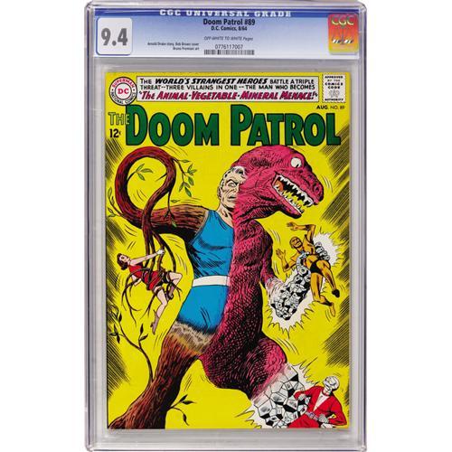 <B>Doom Patrol #89 (DC, 1964) CGC NM 9.4 Off-white to white pages.</B></I> Bob Brown cover. Overstreet 2006 NM- 9.2 value = $110. CGC census 3/07: 5 in 9.4, 1 higher.<BR><BR><b>Shipping:</b> Comics - Slabbed (certified) (<a target="_blank" href="http://www.heritageauctions.com/common/shipping.php">view shipping information</a>)