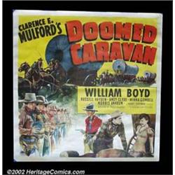 Doomed Caravan (Paramount 1941) Six Sheet (81" X 81") Hopalong Cassidy is out to stop the bad guys again and this time on a rare early six sheet! Large format posters such as this are very hard to find from this early period. Fine on Linen.  Important notice: We expect to be auctioning lots at the rate of 200-250 per hour. Sometimes eBay Premier live bid software cannot keep up with that pace, so we strongly recommend that you place a realistic proxy bid now as insurance to avoid disappointment. Also please note that all Heritage/CAA lots purchased through eBay Premier carry a 20% Buyer's Premium.