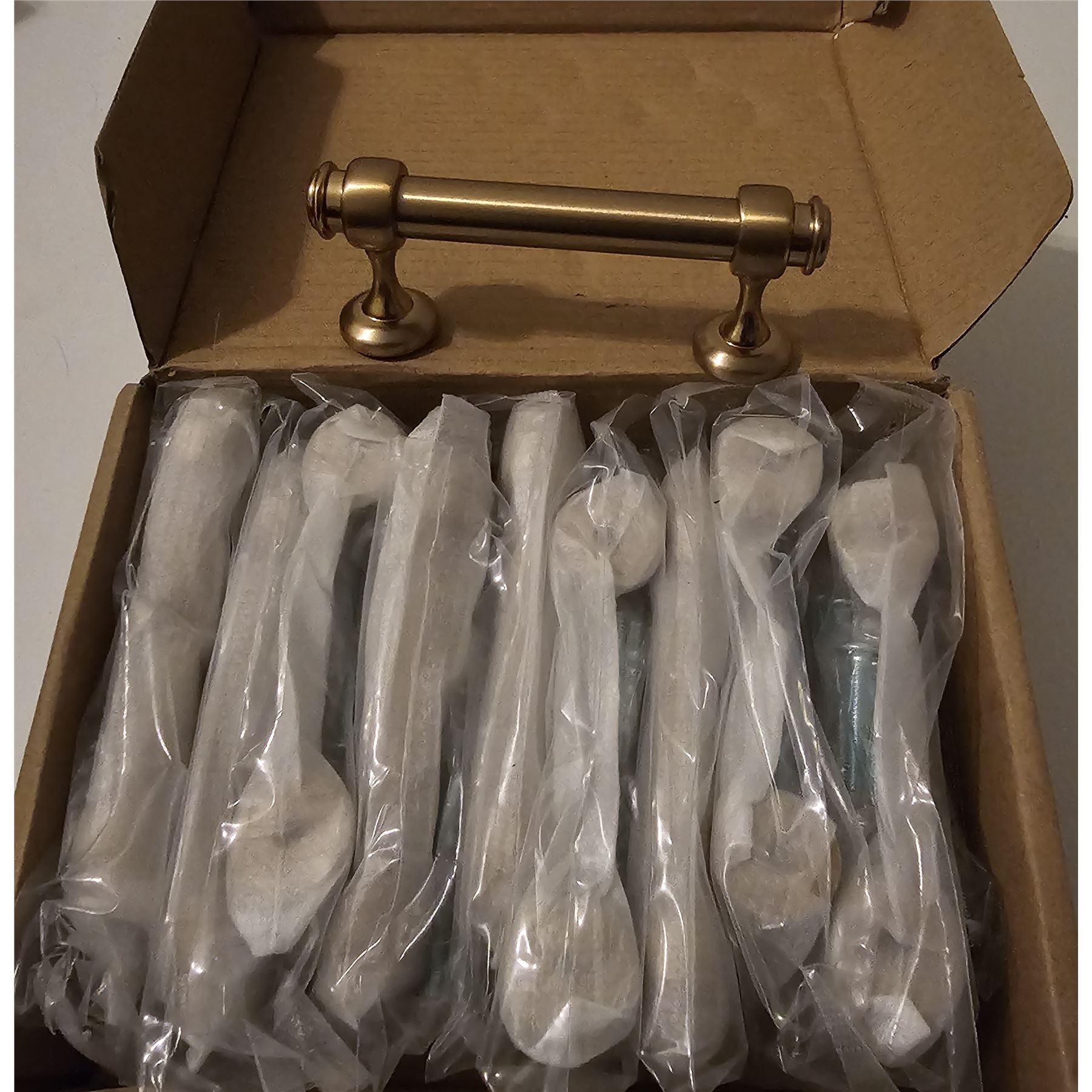 Set of 10, vintage-style solid brass T-bar handles, includes installation hardware, new.