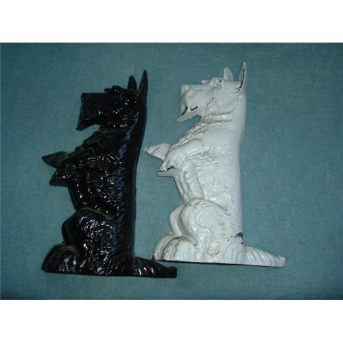 Set of 2 cast iron black & white Scottie door stops. 15 1/2"H x 9 1/2"W at base