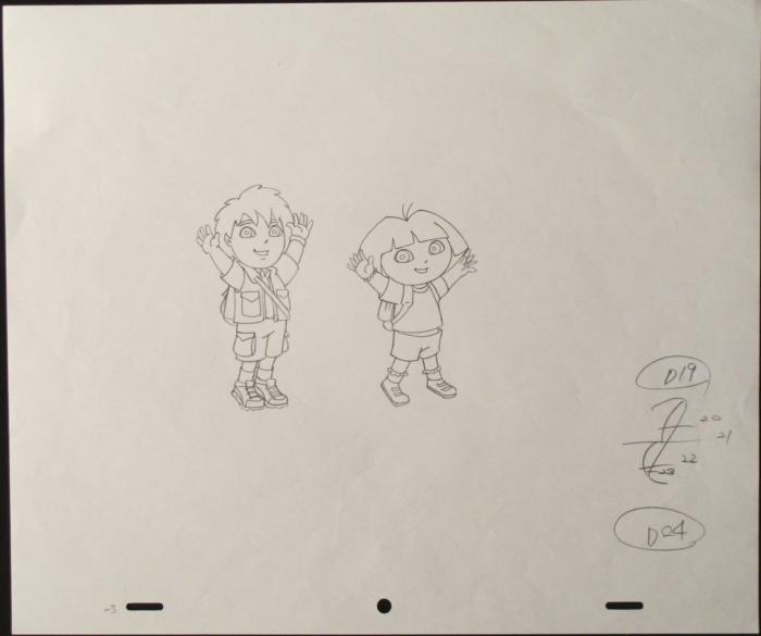 Dora is here with her cousin, Diego, who also loves exploring. Medium: Black pencil on white paper, with animator notations; the bottom of each sheet has peg holesSize: 10 1/2 x 12 1/2 inchesCertificate of Authenticity includedCondition: Excellent This is fine original animation drawing, perfect for any Dora fan!