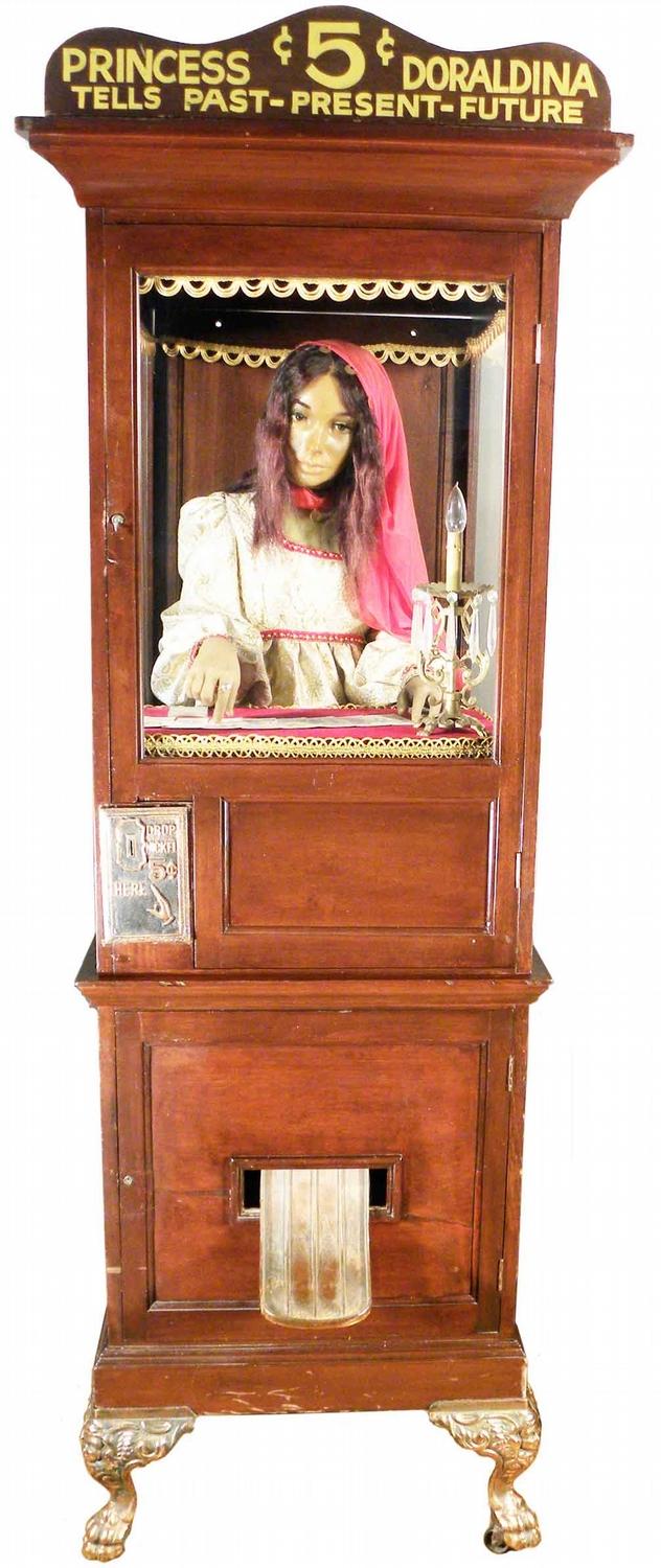 Doraldina Fortune Teller. Wax head. The best one we have ever seen. Complete in excellent working condition. 27 X 94 X 35 inches.