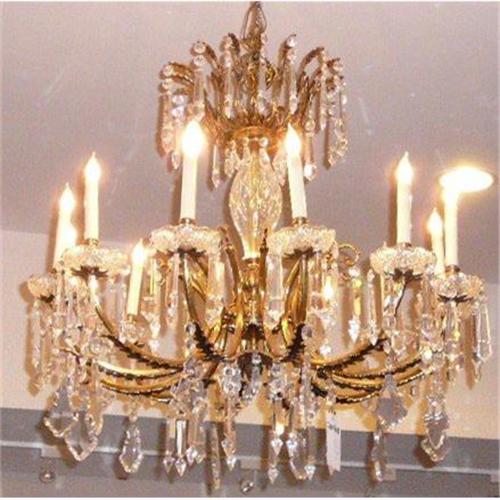 This is an absolutely gorgeous dore' bronze and full lead crystal chandelier. There are twelve candlestick lights. The chandelier is wired for USA use and will light up your life...it's a beauty!!!