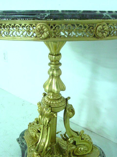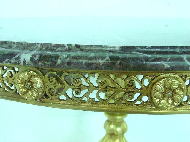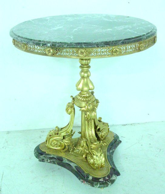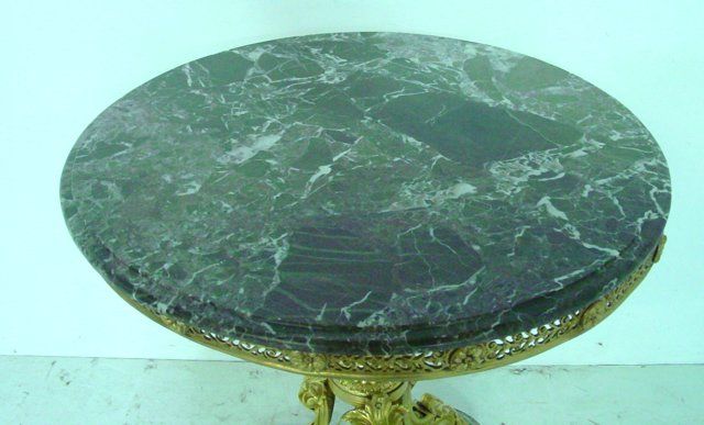 With beveled marble top & base. Fabulous quality. Approx. 29" Diam x 33" H. Please read our terms of sale.