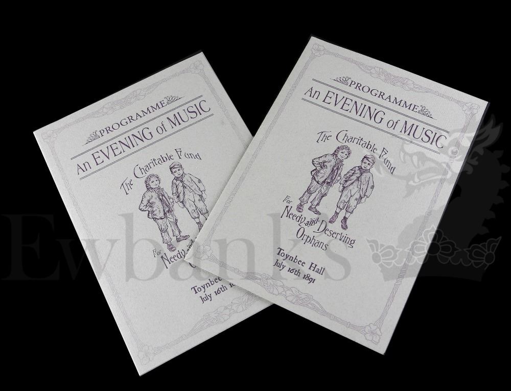 † Dorian Gray (2009) A pair of prop Music programmes, each with a slightly different hand drawn pencil portrait of 'Dorian Gray' (Ben Barnes) on the back. During the 'An Evening Of Music' concert for needy and deserving orphans scene a member of the audience sketches 'Dorian Gray' on the back of her programme, these are two variations of that final prop. Please note that VAT is payable on top of the hammer price at 20% in addition to standard buyers premium inc. VAT for this lot.