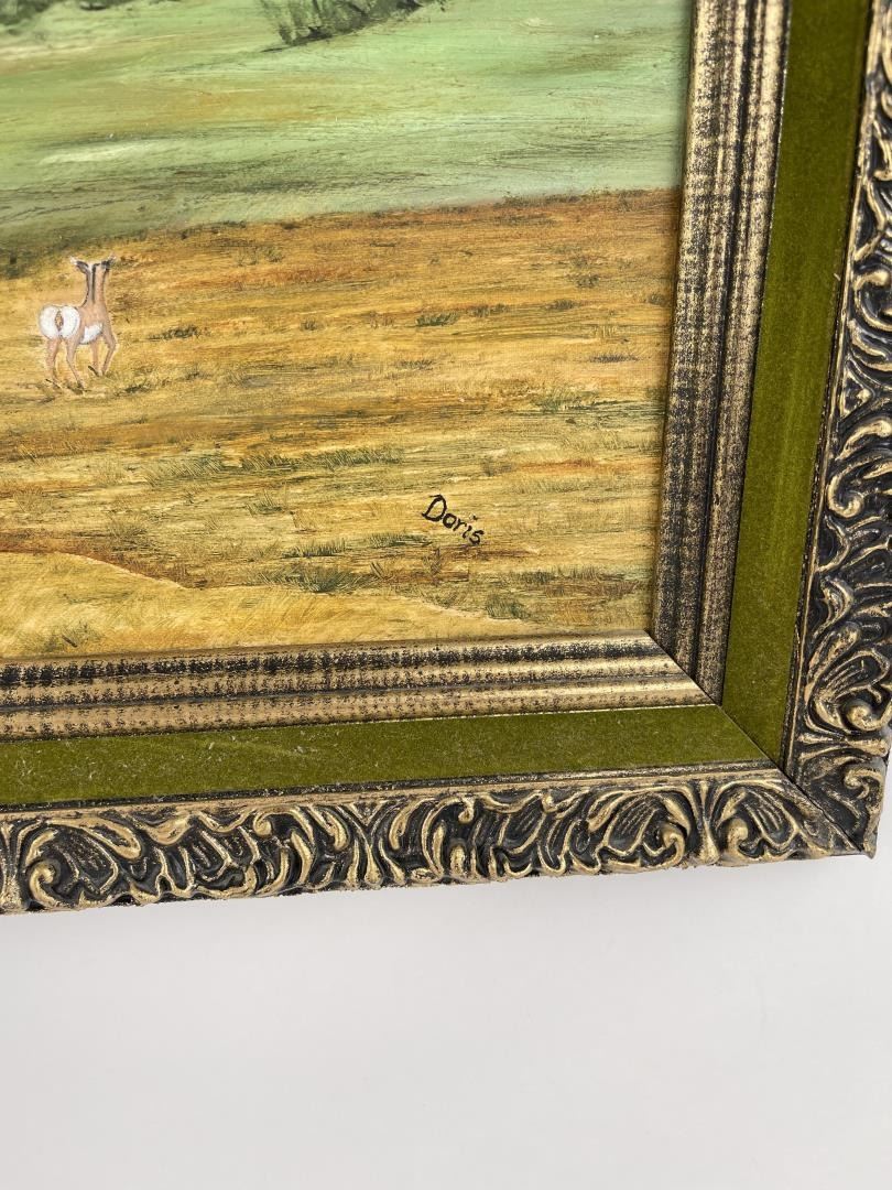 25" by 22 1/4" framed Doris Anderson (Born 1934) is active/lives in Montana, Idaho. Doris Anderson is known for Western landscape, marine, animal. The following is from the artist: Doris Anderson is a largely self-taught watercolourist. Born September 17, 1934 in Sandpoint, Idaho, she moved to Montana as a child. She has always been influenced by the land and even early artistic efforts were an attempt to share that love. She was married in 1955 to a wheat farmer and developed an even stronger feel for the land. During this time of raising four sons, art was in the background but never far away. She has grown through workshops with well known instructors such as Judi Betts, Rex Brandt, Zoltan Zsabo and Joe Bohler and also from fellowship with an excellent group of artists in the Great Falls area. She paints the area she knows and lives in. Her home is located on the banks of the Missouri River near Cascade, Montana. Subject material is largely landscapes but also fishermen, song birds, and a special love of white houses and red barns. The strong influence of the Lewis and Clark Expedition has made her favorite areas to paint, also of interest to historians and collectors alike. She has won numerous awards and has been an exhibitor at the C.M. Russell auction since 1984. She has been in the auction itself fourteen times and a quick draw artist four times. She has shown a number of times at the Classic-American Art show in Los Angeles. This show was held in the Beverly Hills Hilton for a number of years before moving to the Gene Autry Museum in Griffith Park.