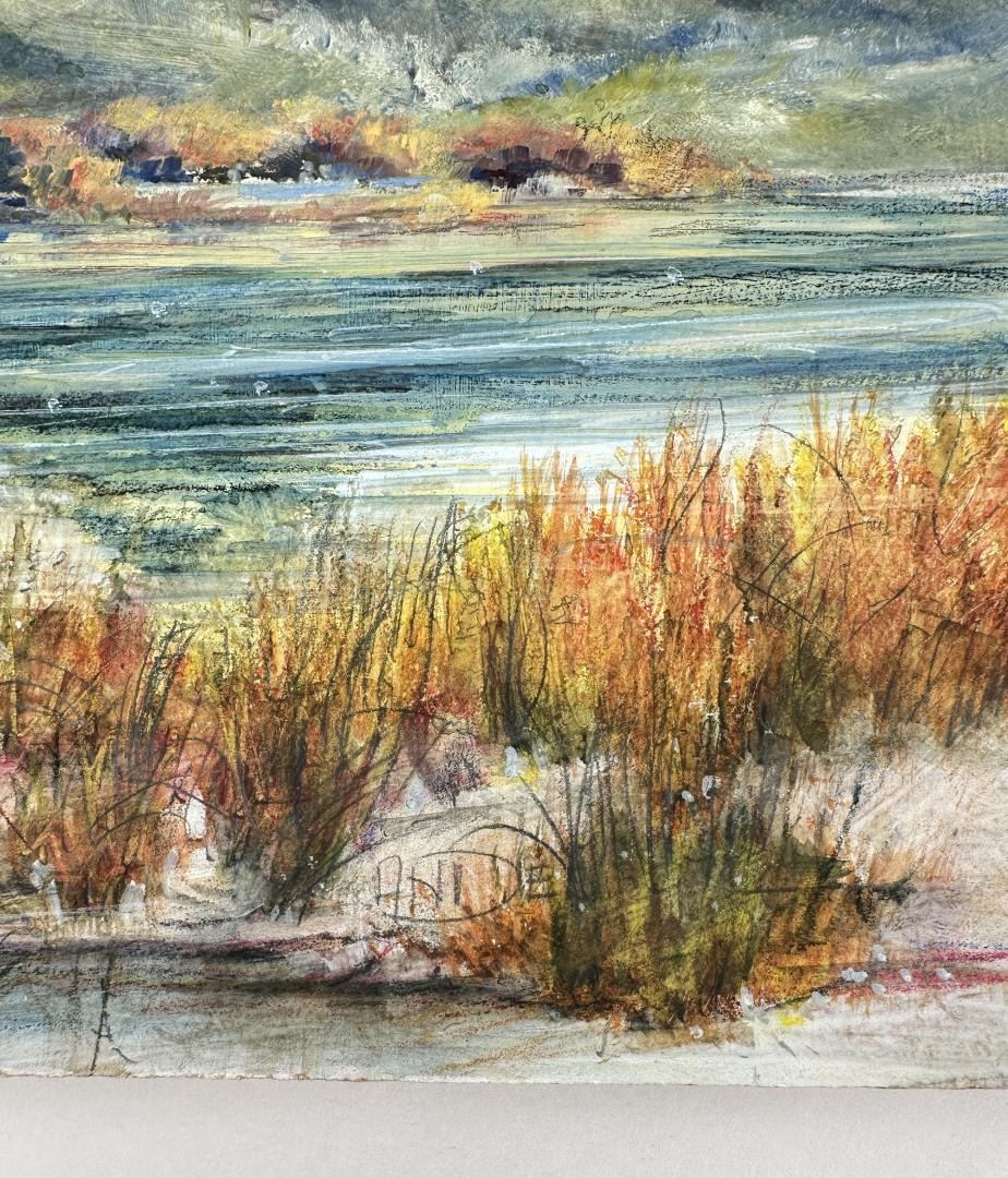 13 7/8" by 10" Doris Anderson (Born 1934) is active/lives in Montana, Idaho. Doris Anderson is known for Western landscape, marine, animal. The following is from the artist: Doris Anderson is a largely self-taught watercolourist. Born September 17, 1934 in Sandpoint, Idaho, she moved to Montana as a child. She has always been influenced by the land and even early artistic efforts were an attempt to share that love. She was married in 1955 to a wheat farmer and developed an even stronger feel for the land. During this time of raising four sons, art was in the background but never far away. She has grown through workshops with well known instructors such as Judi Betts, Rex Brandt, Zoltan Zsabo and Joe Bohler and also from fellowship with an excellent group of artists in the Great Falls area. She paints the area she knows and lives in. Her home is located on the banks of the Missouri River near Cascade, Montana. Subject material is largely landscapes but also fishermen, song birds, and a special love of white houses and red barns. The strong influence of the Lewis and Clark Expedition has made her favorite areas to paint, also of interest to historians and collectors alike. She has won numerous awards and has been an exhibitor at the C.M. Russell auction since 1984. She has been in the auction itself fourteen times and a quick draw artist four times. She has shown a number of times at the Classic-American Art show in Los Angeles. This show was held in the Beverly Hills Hilton for a number of years before moving to the Gene Autry Museum in Griffith Park.