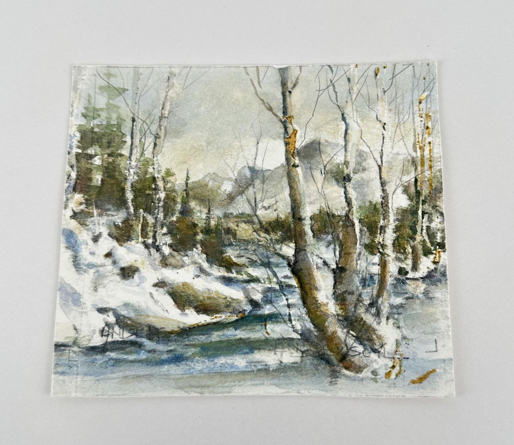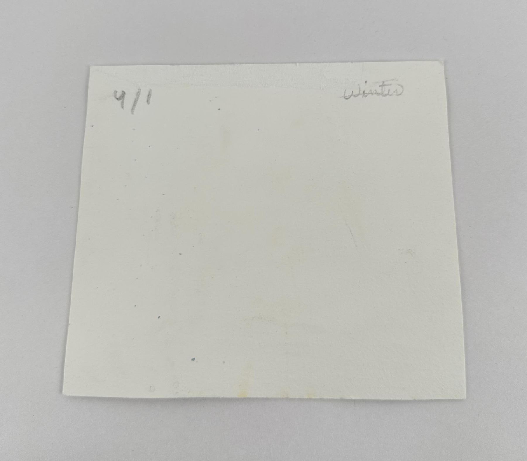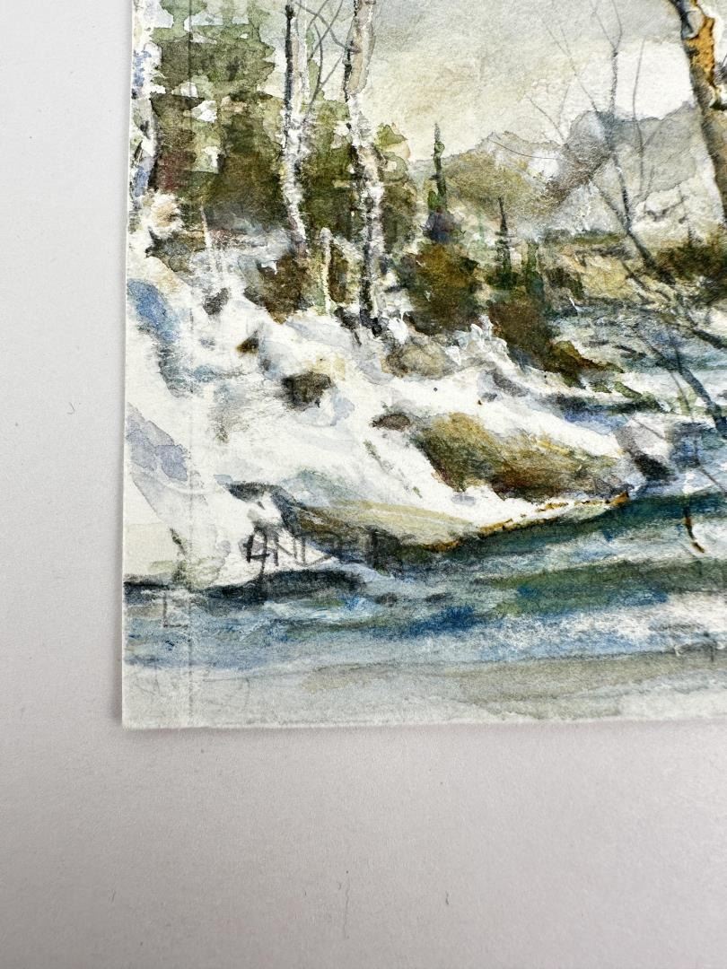 5 3/8" by 4 3/4" Doris Anderson (Born 1934) is active/lives in Montana, Idaho. Doris Anderson is known for Western landscape, marine, animal. The following is from the artist: Doris Anderson is a largely self-taught watercolourist. Born September 17, 1934 in Sandpoint, Idaho, she moved to Montana as a child. She has always been influenced by the land and even early artistic efforts were an attempt to share that love. She was married in 1955 to a wheat farmer and developed an even stronger feel for the land. During this time of raising four sons, art was in the background but never far away. She has grown through workshops with well known instructors such as Judi Betts, Rex Brandt, Zoltan Zsabo and Joe Bohler and also from fellowship with an excellent group of artists in the Great Falls area. She paints the area she knows and lives in. Her home is located on the banks of the Missouri River near Cascade, Montana. Subject material is largely landscapes but also fishermen, song birds, and a special love of white houses and red barns. The strong influence of the Lewis and Clark Expedition has made her favorite areas to paint, also of interest to historians and collectors alike. She has won numerous awards and has been an exhibitor at the C.M. Russell auction since 1984. She has been in the auction itself fourteen times and a quick draw artist four times. She has shown a number of times at the Classic-American Art show in Los Angeles. This show was held in the Beverly Hills Hilton for a number of years before moving to the Gene Autry Museum in Griffith Park.