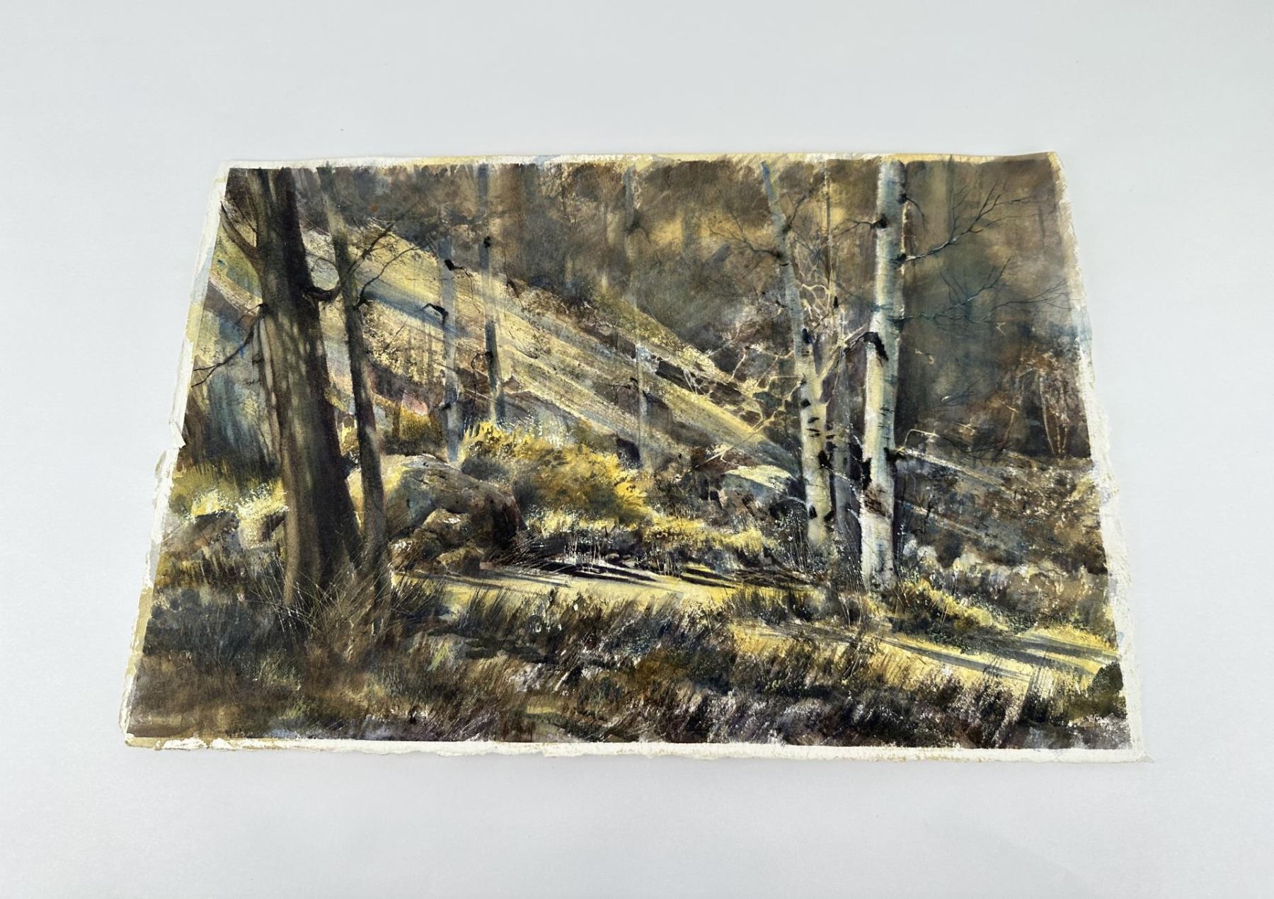 22 3/4" by 15 1/8". Not signed. Doris Anderson (Born 1934) is active/lives in Montana, Idaho. Doris Anderson is known for Western landscape, marine, animal. The following is from the artist: Doris Anderson is a largely self-taught watercolourist. Born September 17, 1934 in Sandpoint, Idaho, she moved to Montana as a child. She has always been influenced by the land and even early artistic efforts were an attempt to share that love. She was married in 1955 to a wheat farmer and developed an even stronger feel for the land. During this time of raising four sons, art was in the background but never far away. She has grown through workshops with well known instructors such as Judi Betts, Rex Brandt, Zoltan Zsabo and Joe Bohler and also from fellowship with an excellent group of artists in the Great Falls area. She paints the area she knows and lives in. Her home is located on the banks of the Missouri River near Cascade, Montana. Subject material is largely landscapes but also fishermen, song birds, and a special love of white houses and red barns. The strong influence of the Lewis and Clark Expedition has made her favorite areas to paint, also of interest to historians and collectors alike. She has won numerous awards and has been an exhibitor at the C.M. Russell auction since 1984. She has been in the auction itself fourteen times and a quick draw artist four times. She has shown a number of times at the Classic-American Art show in Los Angeles. This show was held in the Beverly Hills Hilton for a number of years before moving to the Gene Autry Museum in Griffith Park.