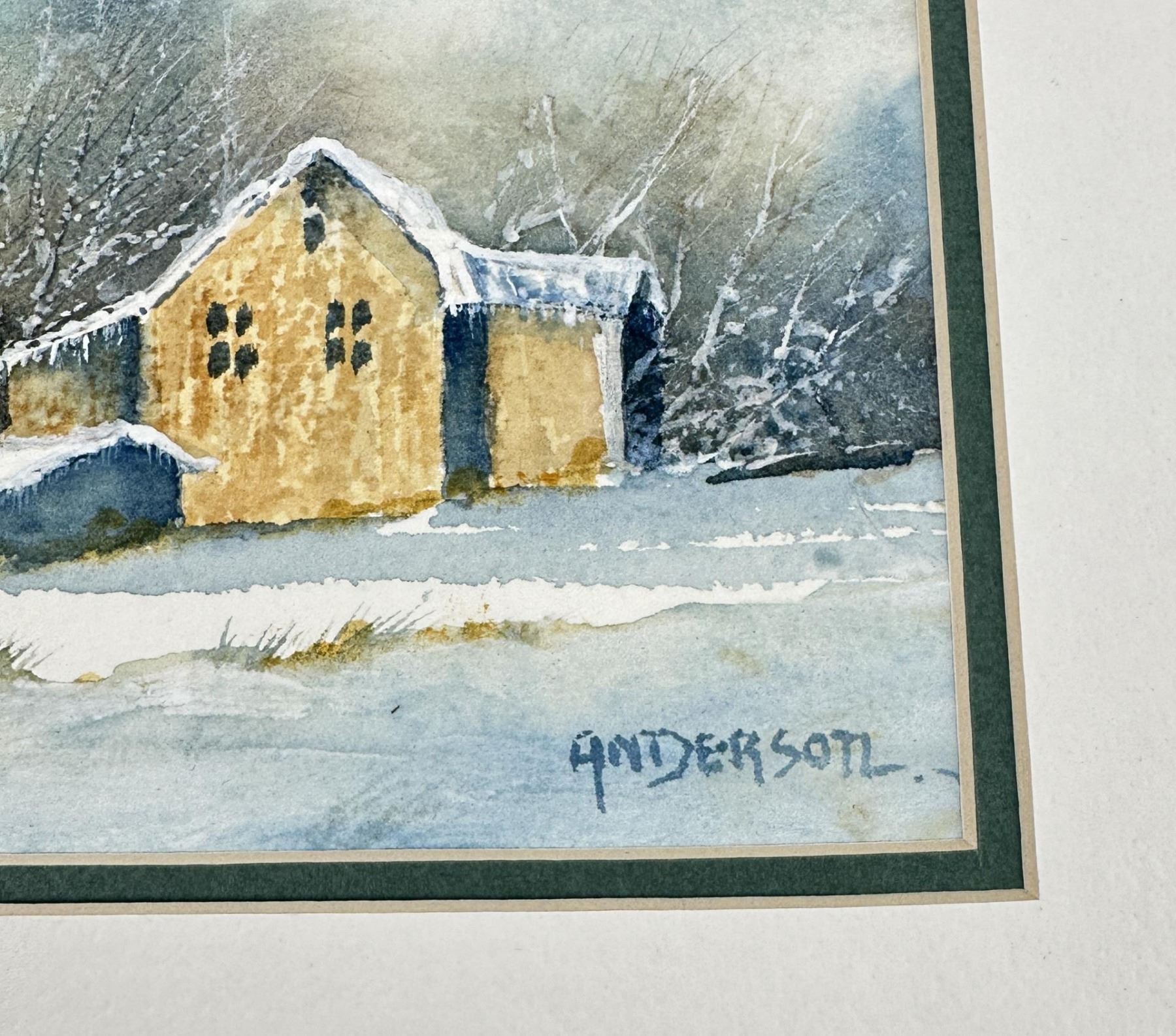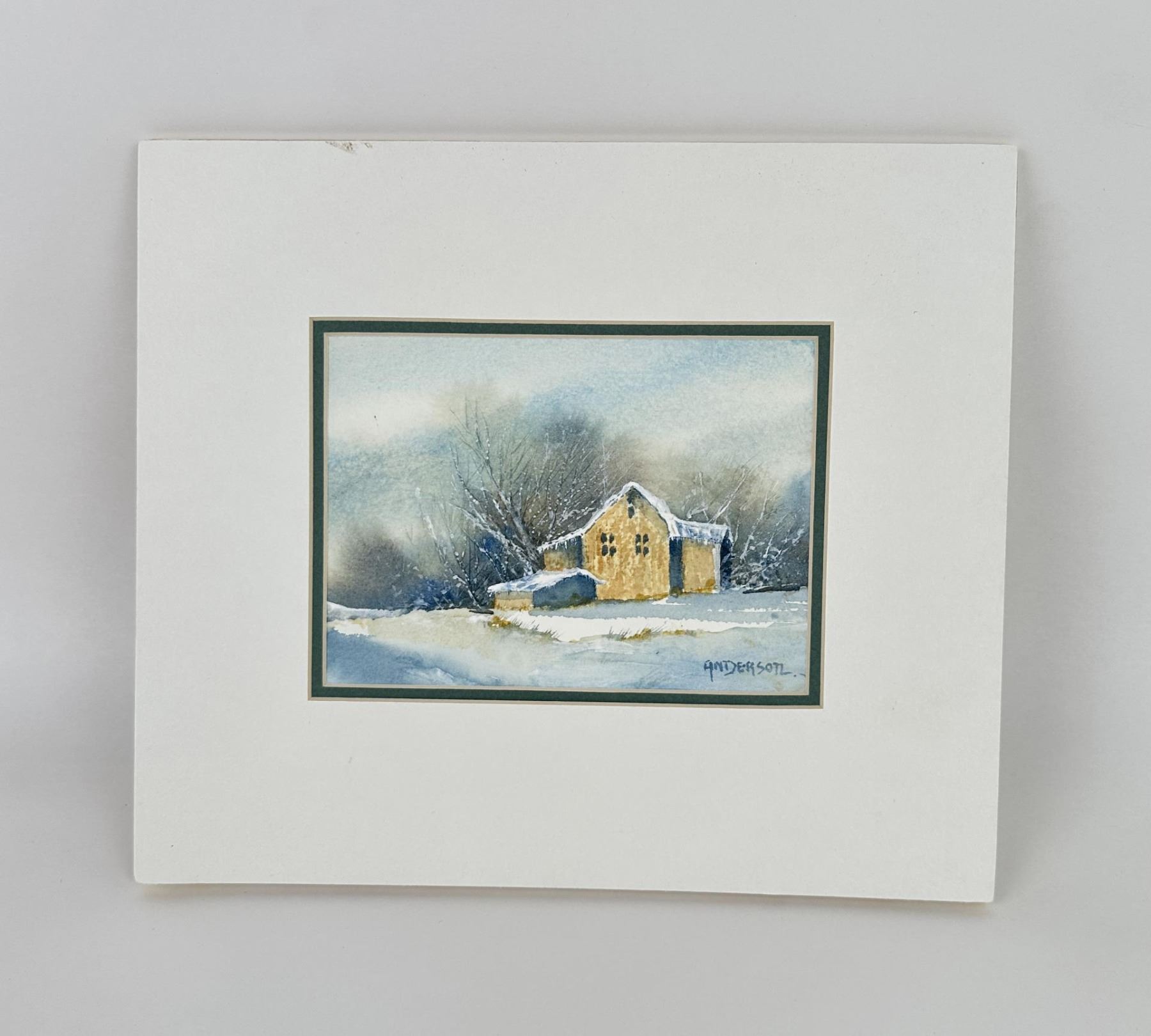 12 5/8" by 10 7/8" in matte. Doris Anderson (Born 1934) is active/lives in Montana, Idaho. Doris Anderson is known for Western landscape, marine, animal. The following is from the artist: Doris Anderson is a largely self-taught watercolourist. Born September 17, 1934 in Sandpoint, Idaho, she moved to Montana as a child. She has always been influenced by the land and even early artistic efforts were an attempt to share that love. She was married in 1955 to a wheat farmer and developed an even stronger feel for the land. During this time of raising four sons, art was in the background but never far away. She has grown through workshops with well known instructors such as Judi Betts, Rex Brandt, Zoltan Zsabo and Joe Bohler and also from fellowship with an excellent group of artists in the Great Falls area. She paints the area she knows and lives in. Her home is located on the banks of the Missouri River near Cascade, Montana. Subject material is largely landscapes but also fishermen, song birds, and a special love of white houses and red barns. The strong influence of the Lewis and Clark Expedition has made her favorite areas to paint, also of interest to historians and collectors alike. She has won numerous awards and has been an exhibitor at the C.M. Russell auction since 1984. She has been in the auction itself fourteen times and a quick draw artist four times. She has shown a number of times at the Classic-American Art show in Los Angeles. This show was held in the Beverly Hills Hilton for a number of years before moving to the Gene Autry Museum in Griffith Park.