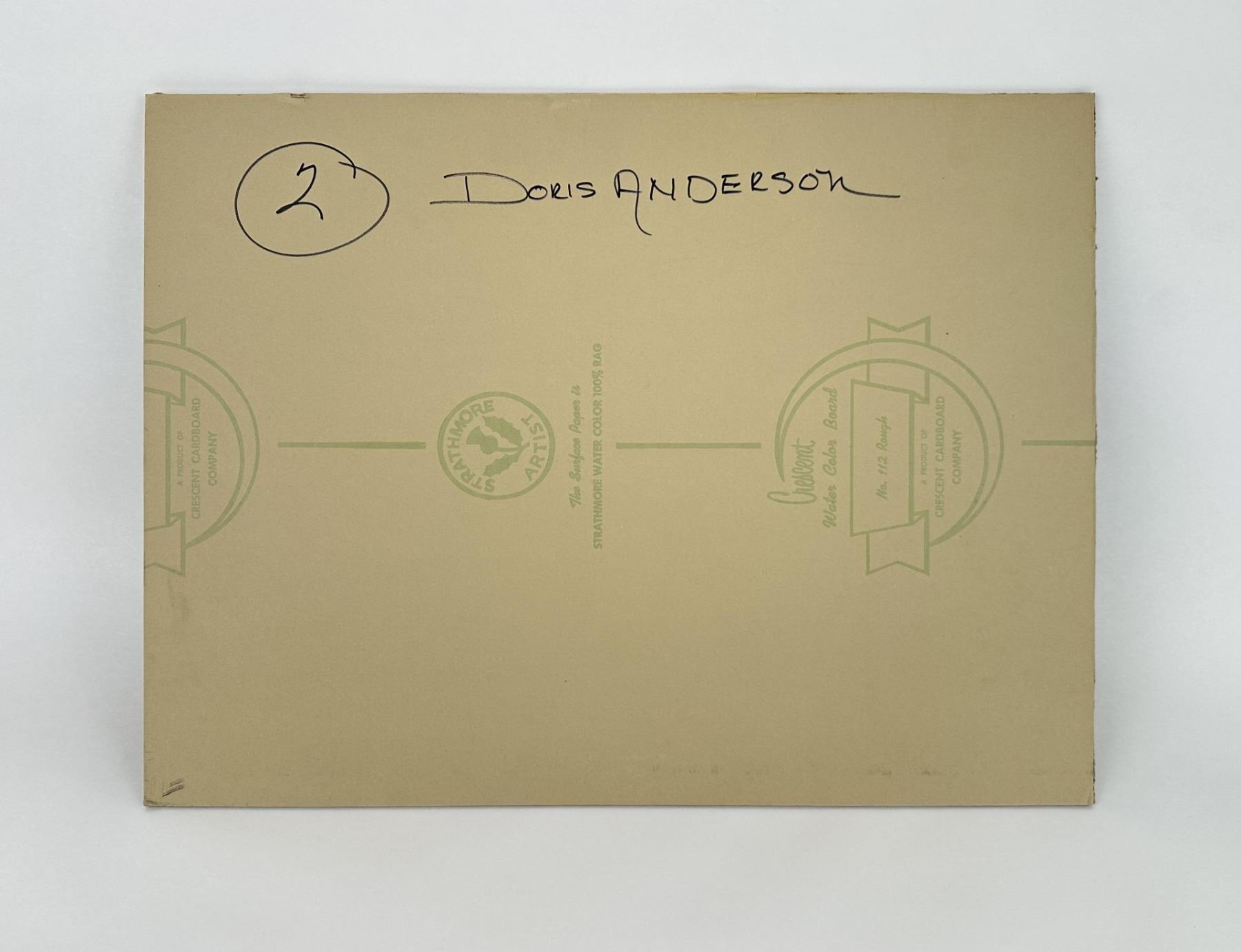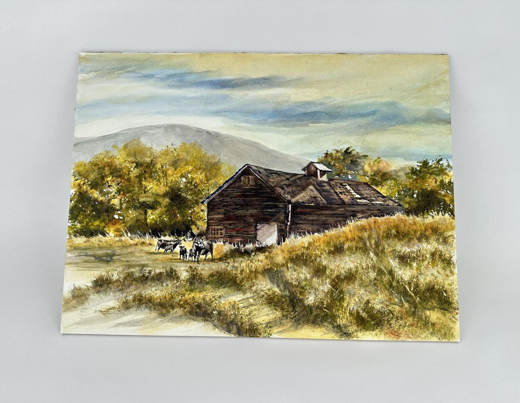 20 1/8" by 15" Doris Anderson (Born 1934) is active/lives in Montana, Idaho. Doris Anderson is known for Western landscape, marine, animal. The following is from the artist: Doris Anderson is a largely self-taught watercolourist. Born September 17, 1934 in Sandpoint, Idaho, she moved to Montana as a child. She has always been influenced by the land and even early artistic efforts were an attempt to share that love. She was married in 1955 to a wheat farmer and developed an even stronger feel for the land. During this time of raising four sons, art was in the background but never far away. She has grown through workshops with well known instructors such as Judi Betts, Rex Brandt, Zoltan Zsabo and Joe Bohler and also from fellowship with an excellent group of artists in the Great Falls area. She paints the area she knows and lives in. Her home is located on the banks of the Missouri River near Cascade, Montana. Subject material is largely landscapes but also fishermen, song birds, and a special love of white houses and red barns. The strong influence of the Lewis and Clark Expedition has made her favorite areas to paint, also of interest to historians and collectors alike. She has won numerous awards and has been an exhibitor at the C.M. Russell auction since 1984. She has been in the auction itself fourteen times and a quick draw artist four times. She has shown a number of times at the Classic-American Art show in Los Angeles. This show was held in the Beverly Hills Hilton for a number of years before moving to the Gene Autry Museum in Griffith Park.