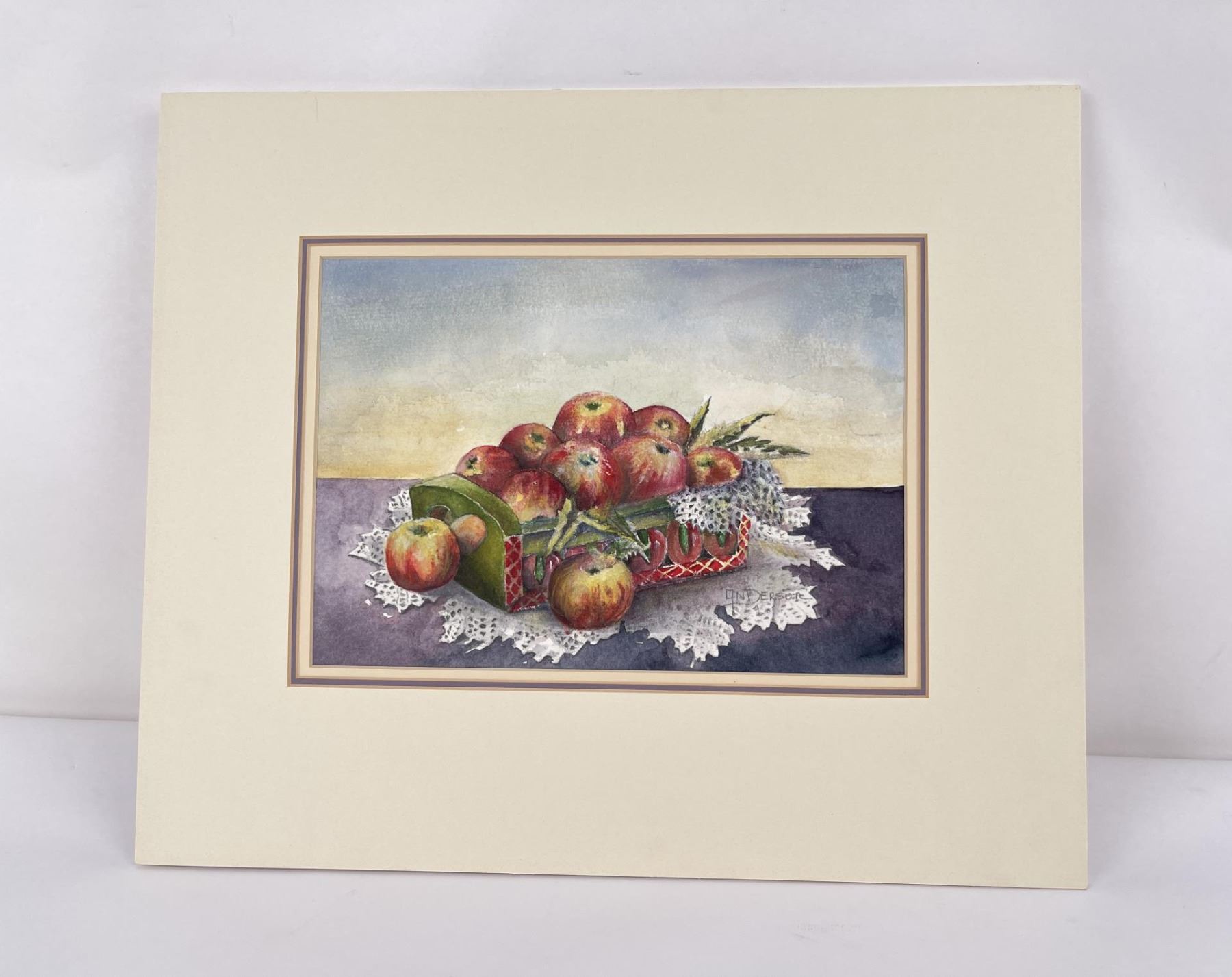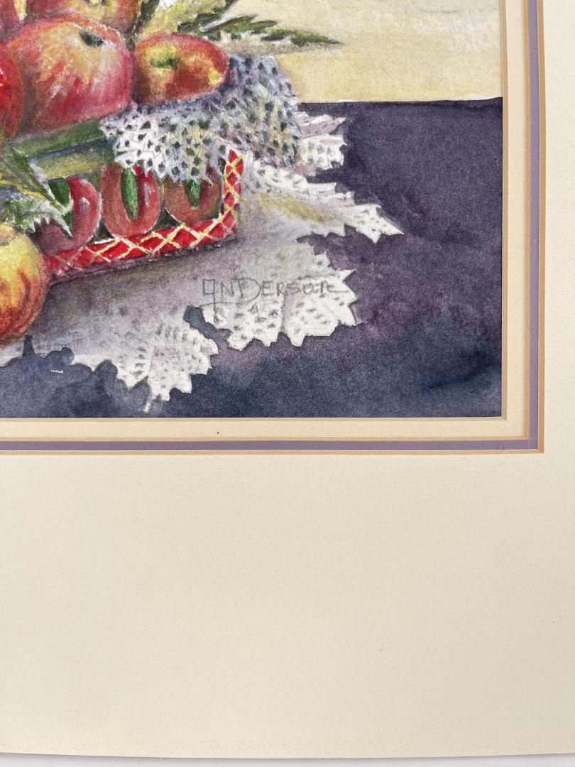 16 1/2" by 14" in matte. Doris Anderson (Born 1934) is active/lives in Montana, Idaho. Doris Anderson is known for Western landscape, marine, animal. The following is from the artist: Doris Anderson is a largely self-taught watercolourist. Born September 17, 1934 in Sandpoint, Idaho, she moved to Montana as a child. She has always been influenced by the land and even early artistic efforts were an attempt to share that love. She was married in 1955 to a wheat farmer and developed an even stronger feel for the land. During this time of raising four sons, art was in the background but never far away. She has grown through workshops with well known instructors such as Judi Betts, Rex Brandt, Zoltan Zsabo and Joe Bohler and also from fellowship with an excellent group of artists in the Great Falls area. She paints the area she knows and lives in. Her home is located on the banks of the Missouri River near Cascade, Montana. Subject material is largely landscapes but also fishermen, song birds, and a special love of white houses and red barns. The strong influence of the Lewis and Clark Expedition has made her favorite areas to paint, also of interest to historians and collectors alike. She has won numerous awards and has been an exhibitor at the C.M. Russell auction since 1984. She has been in the auction itself fourteen times and a quick draw artist four times. She has shown a number of times at the Classic-American Art show in Los Angeles. This show was held in the Beverly Hills Hilton for a number of years before moving to the Gene Autry Museum in Griffith Park.