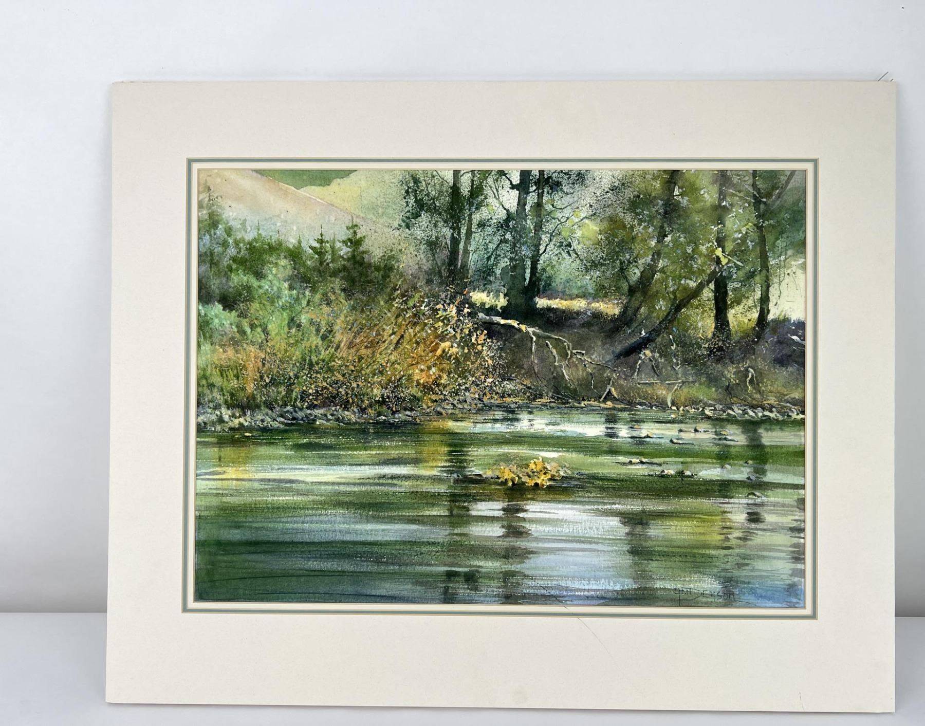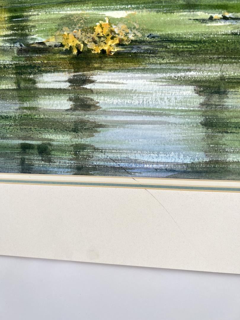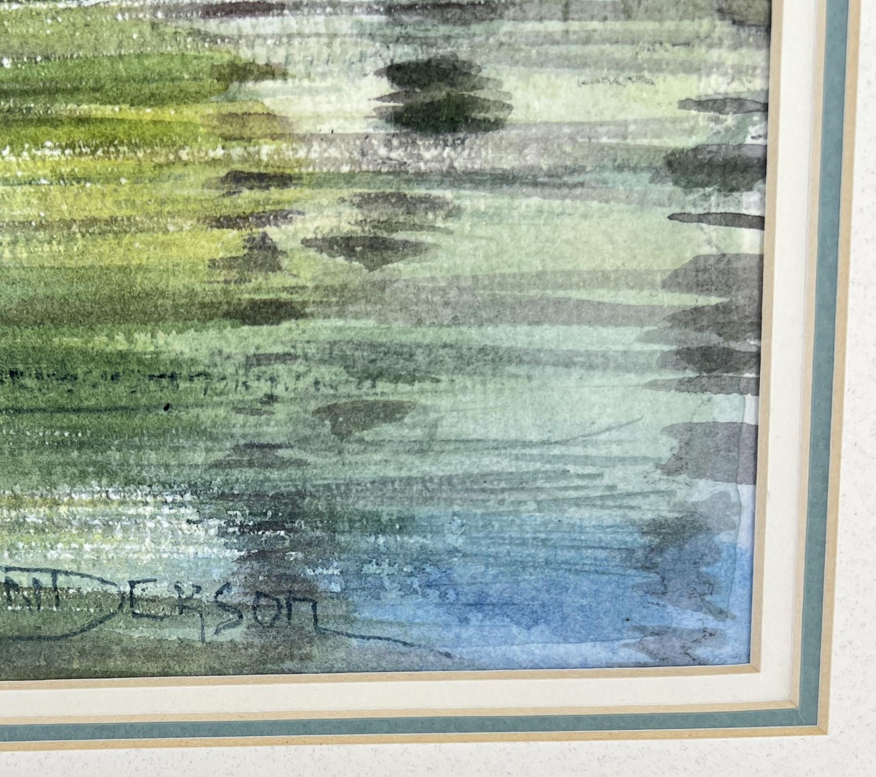 21 1/2" by 26 1/2" in matte. Doris Anderson (Born 1934) is active/lives in Montana, Idaho. Doris Anderson is known for Western landscape, marine, animal. The following is from the artist: Doris Anderson is a largely self-taught watercolourist. Born September 17, 1934 in Sandpoint, Idaho, she moved to Montana as a child. She has always been influenced by the land and even early artistic efforts were an attempt to share that love. She was married in 1955 to a wheat farmer and developed an even stronger feel for the land. During this time of raising four sons, art was in the background but never far away. She has grown through workshops with well known instructors such as Judi Betts, Rex Brandt, Zoltan Zsabo and Joe Bohler and also from fellowship with an excellent group of artists in the Great Falls area. She paints the area she knows and lives in. Her home is located on the banks of the Missouri River near Cascade, Montana. Subject material is largely landscapes but also fishermen, song birds, and a special love of white houses and red barns. The strong influence of the Lewis and Clark Expedition has made her favorite areas to paint, also of interest to historians and collectors alike. She has won numerous awards and has been an exhibitor at the C.M. Russell auction since 1984. She has been in the auction itself fourteen times and a quick draw artist four times. She has shown a number of times at the Classic-American Art show in Los Angeles. This show was held in the Beverly Hills Hilton for a number of years before moving to the Gene Autry Museum in Griffith Park.