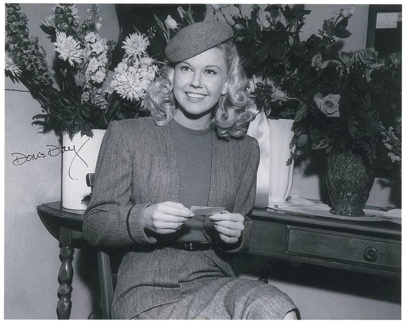 Two satin-finish 10 x 8 photos, one color, each signed in black felt tip by Day. In fine condition.