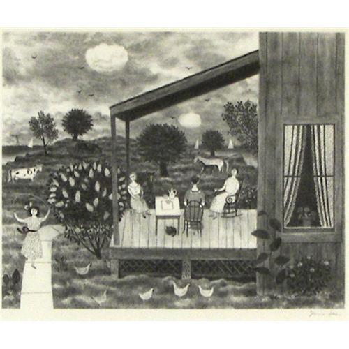 Doris Lee (1905-1983) Broadmoor Art Academy, Lithograph, Women on Porch, image size 9" x 11 1/4", pencil signed