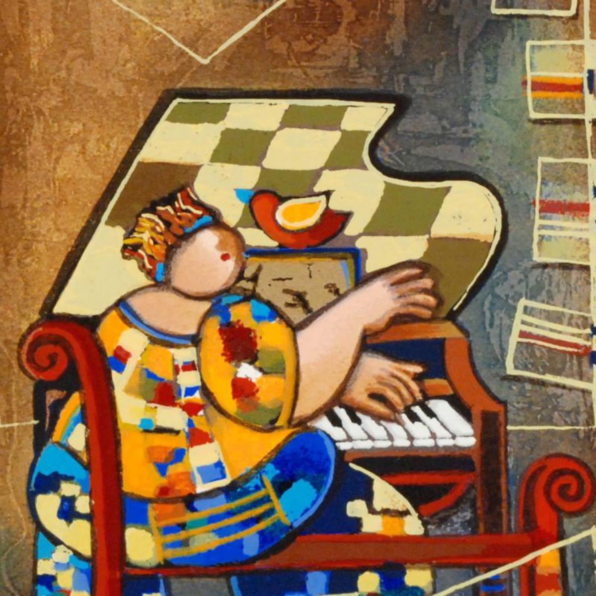 Dorit Levi, "The Grand Piano" Limited Edition Serigraph, Numbered and Hand Signed with Certificate o