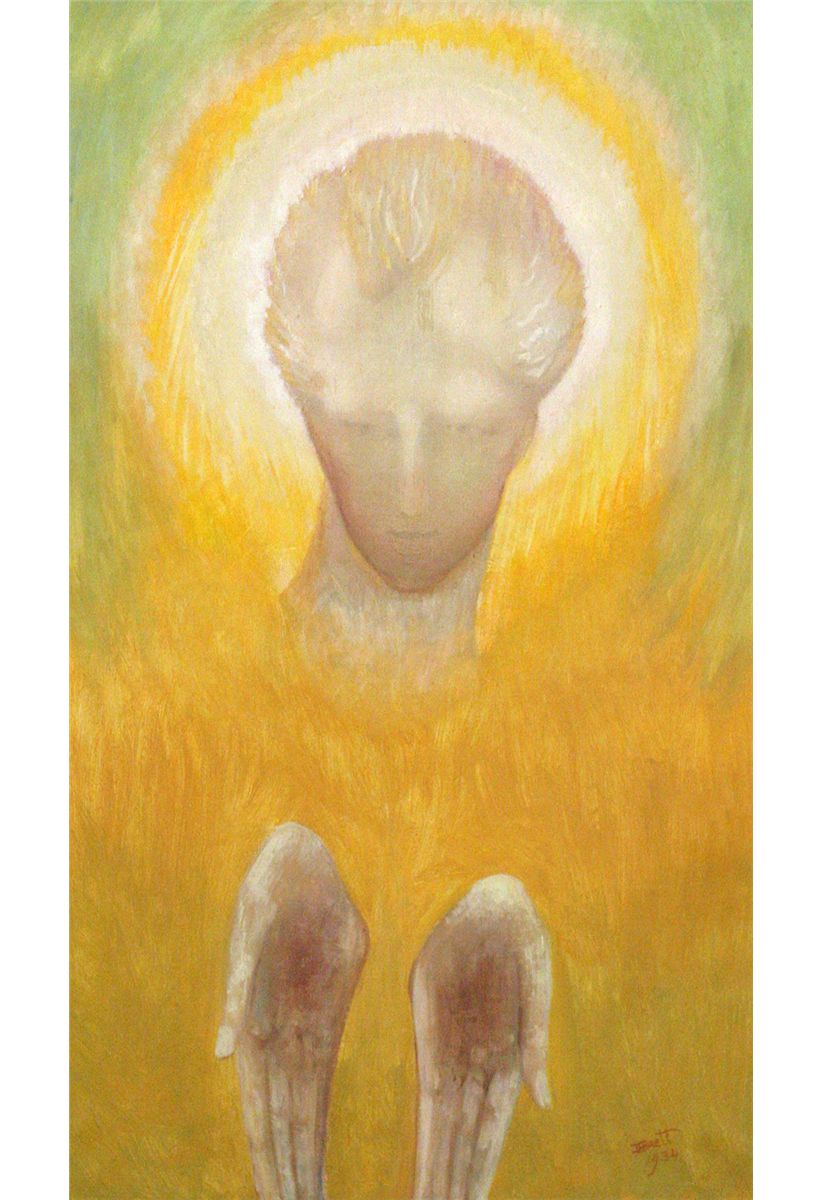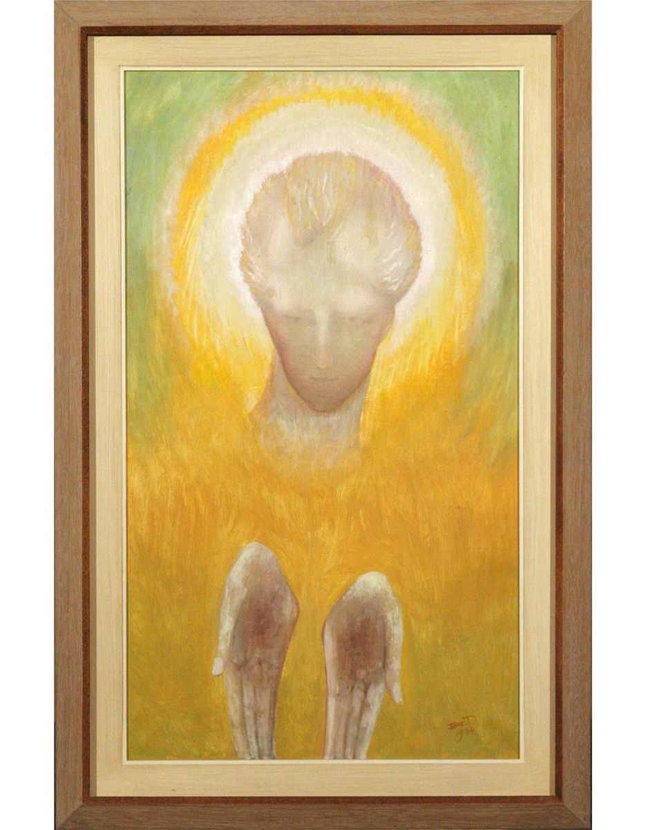 Dorothy Brett (1883 - 1976). Liebestod. 33" x 19" oil on canvas. Signed lower right: D E BRETT 1934. Gallery A (Taos, NM.) sticker attached along with notation from the artist.