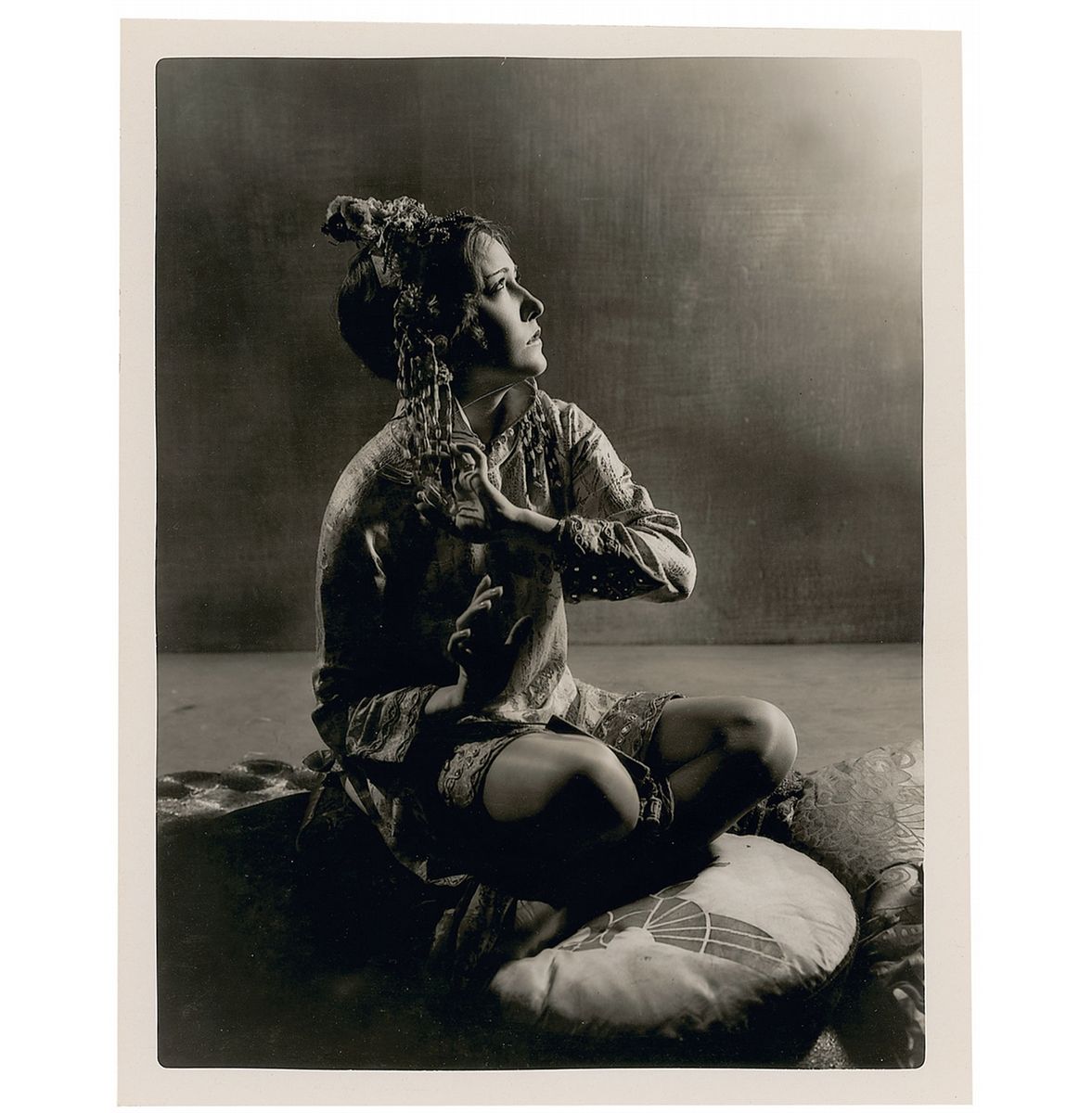 Classic ‘flapper’ actress (1903–1957) cast opposite Buster Keaton in 1929’s Spite Marriage. Original matte-finish 10.5 x 13.5 photo of Sebastian sitting cross-legged in an exotic costume by Clarence Sinclair Bull, bearing his MGM photographer’s stamp to the reverse. In fine condition.