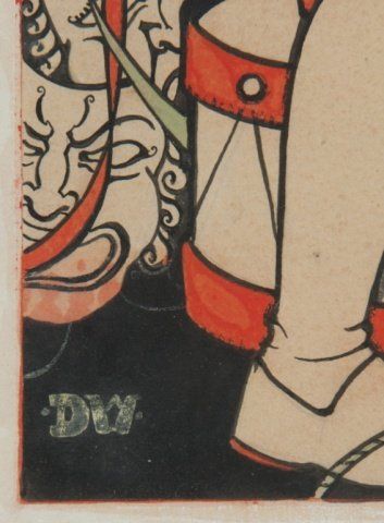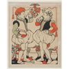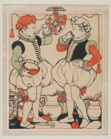 Wheeler, Dorothy (U.S./U.K., 1891-1966). Two children eating and drinking. Monogrammed at l.l., "DW". Ink on paper. Framed under glass. Sight: 15 1/4" x 12 1/2". Frame: 24" x 20 1/2".