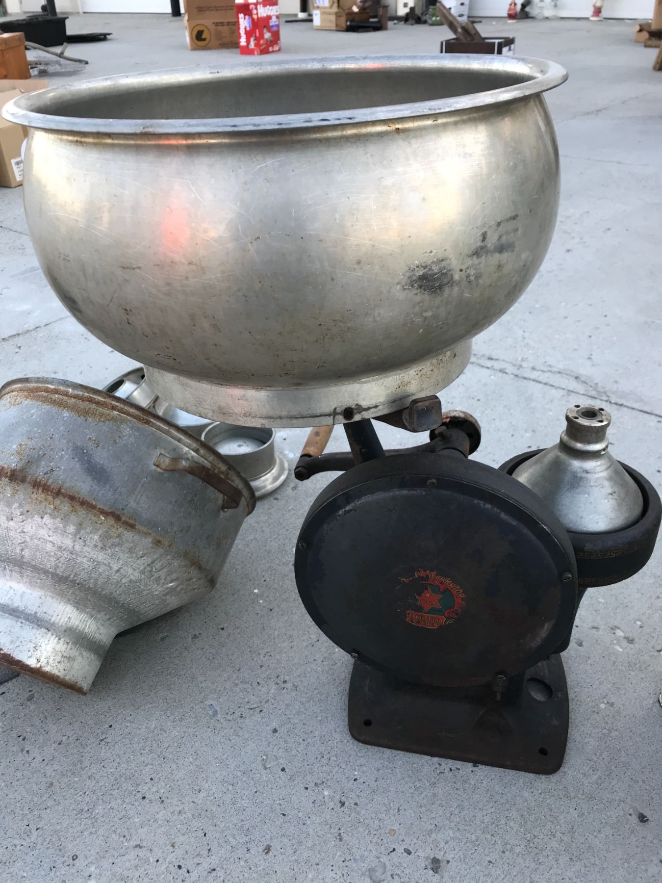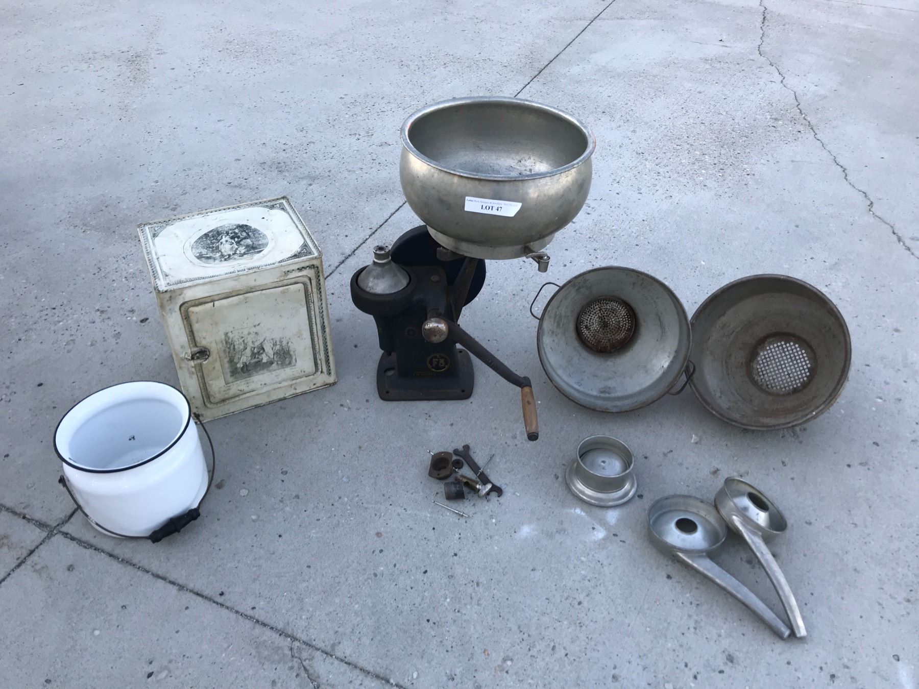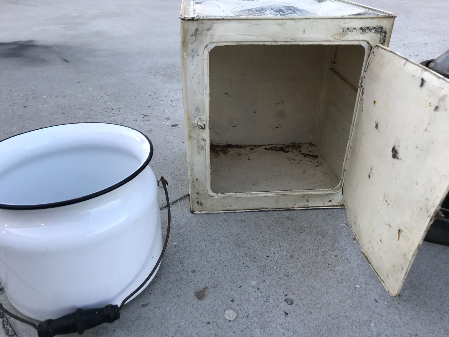 Dorthea Brad Box, Cream Separator & Vintage Enamelware Pot