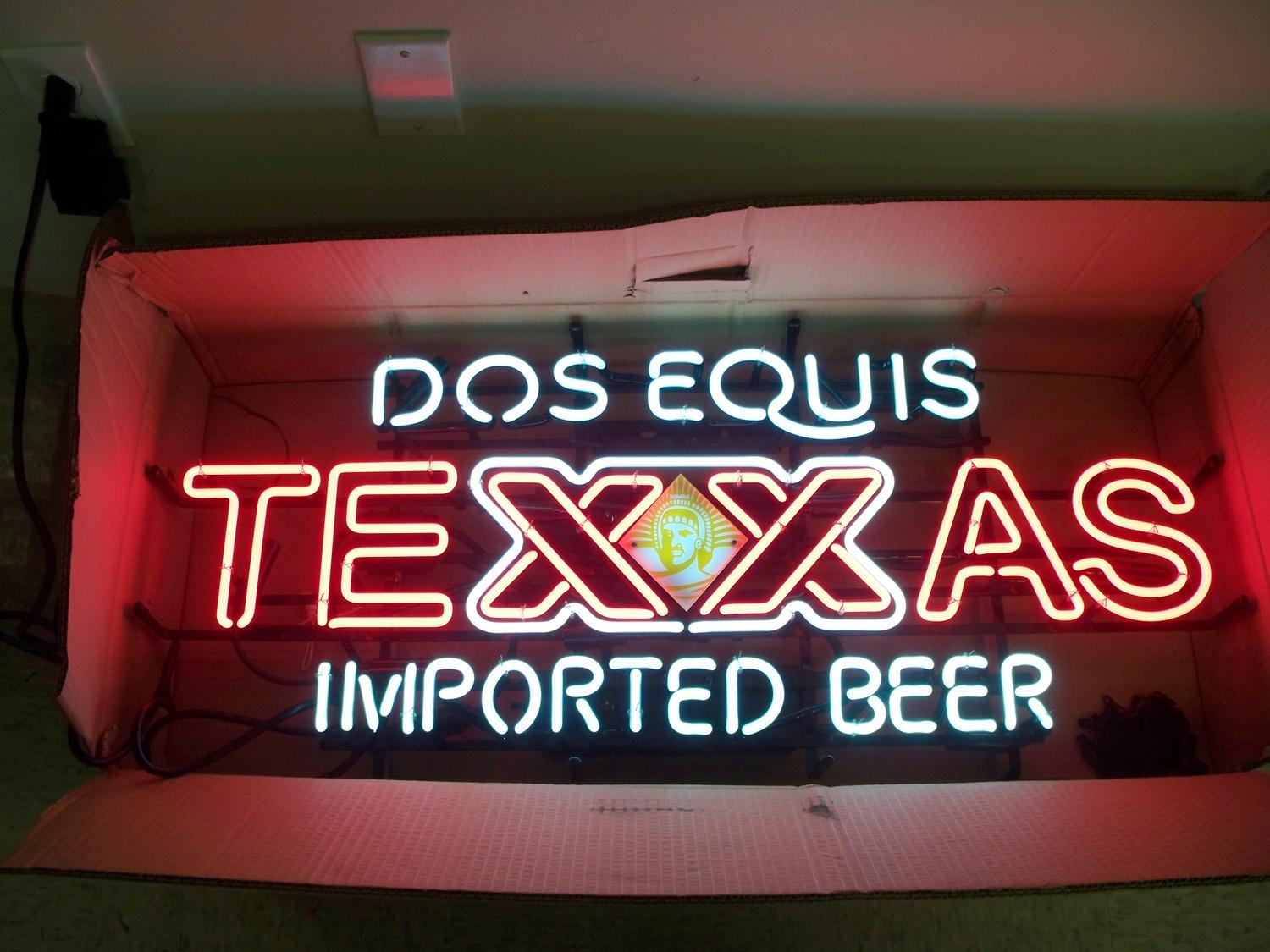 Dos Equis Neon Beer Sign, New In Box W/Chains, 38.5"x17"