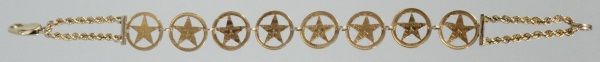 Made with 8 dos peso coins. From the collection of Janie Dean, wife of Texas Ranger Jack Dean. 13grams of gold.