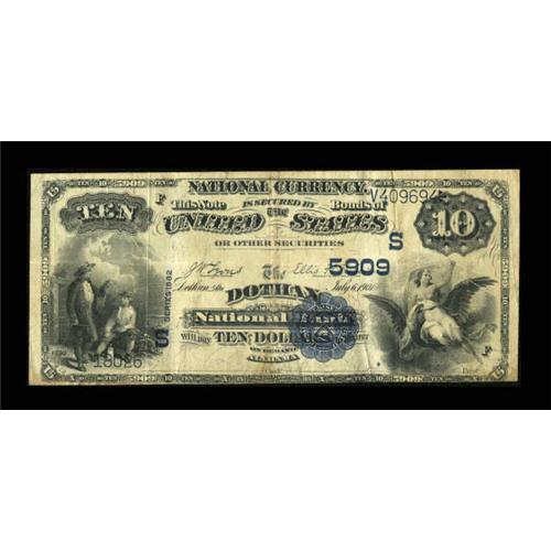 <B>Dothan, AL </B></I>- $10 1882 Value Back Fr. 577 <B>The Dothan NB</B></I> Ch. # (S)5909<B></B></I><BR> The signatures have faded on this tougher type for the state. Less than 50 Value Backs known. <B>Fine.</B></I><BR><BR><b>Shipping:</b> Coins & Currency (<a target="_blank" href="http://www.heritageauctions.com/common/shipping.php">view shipping information</a>)