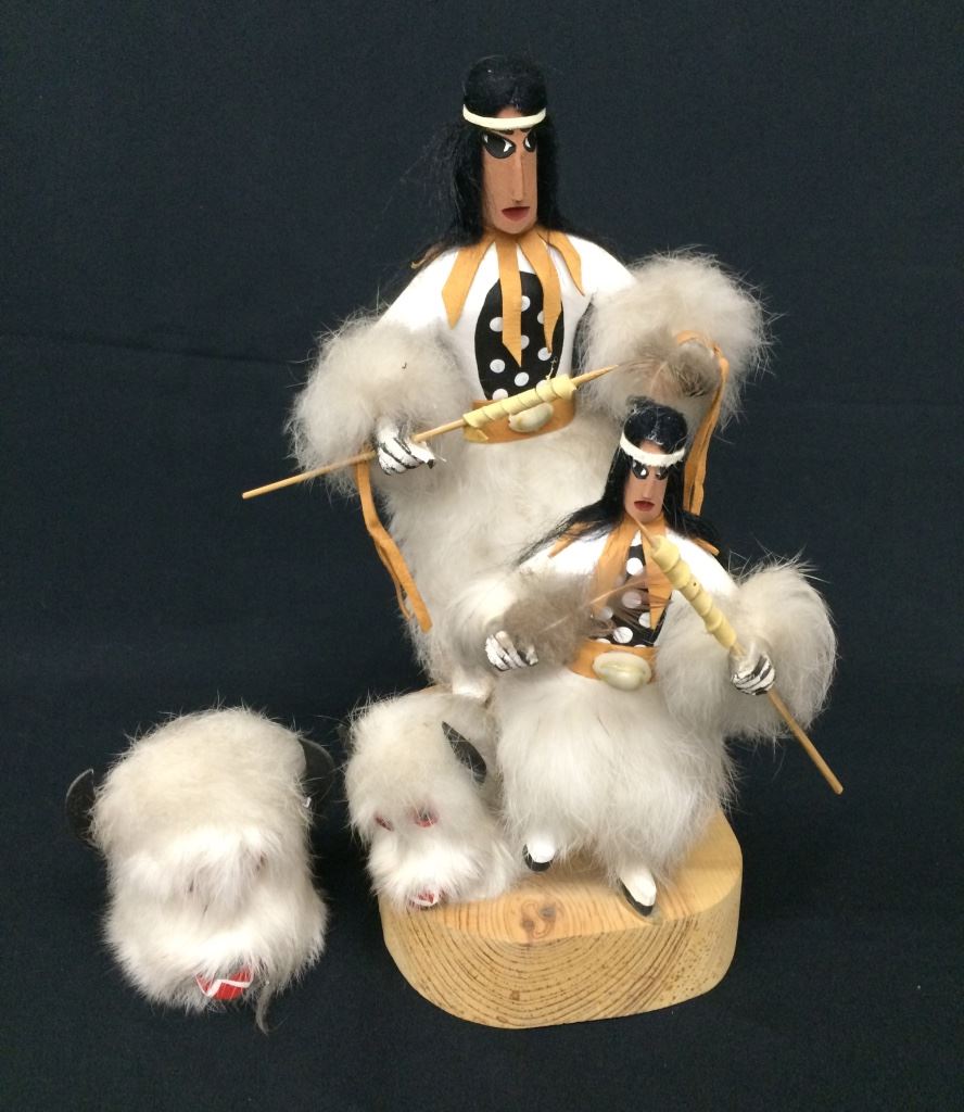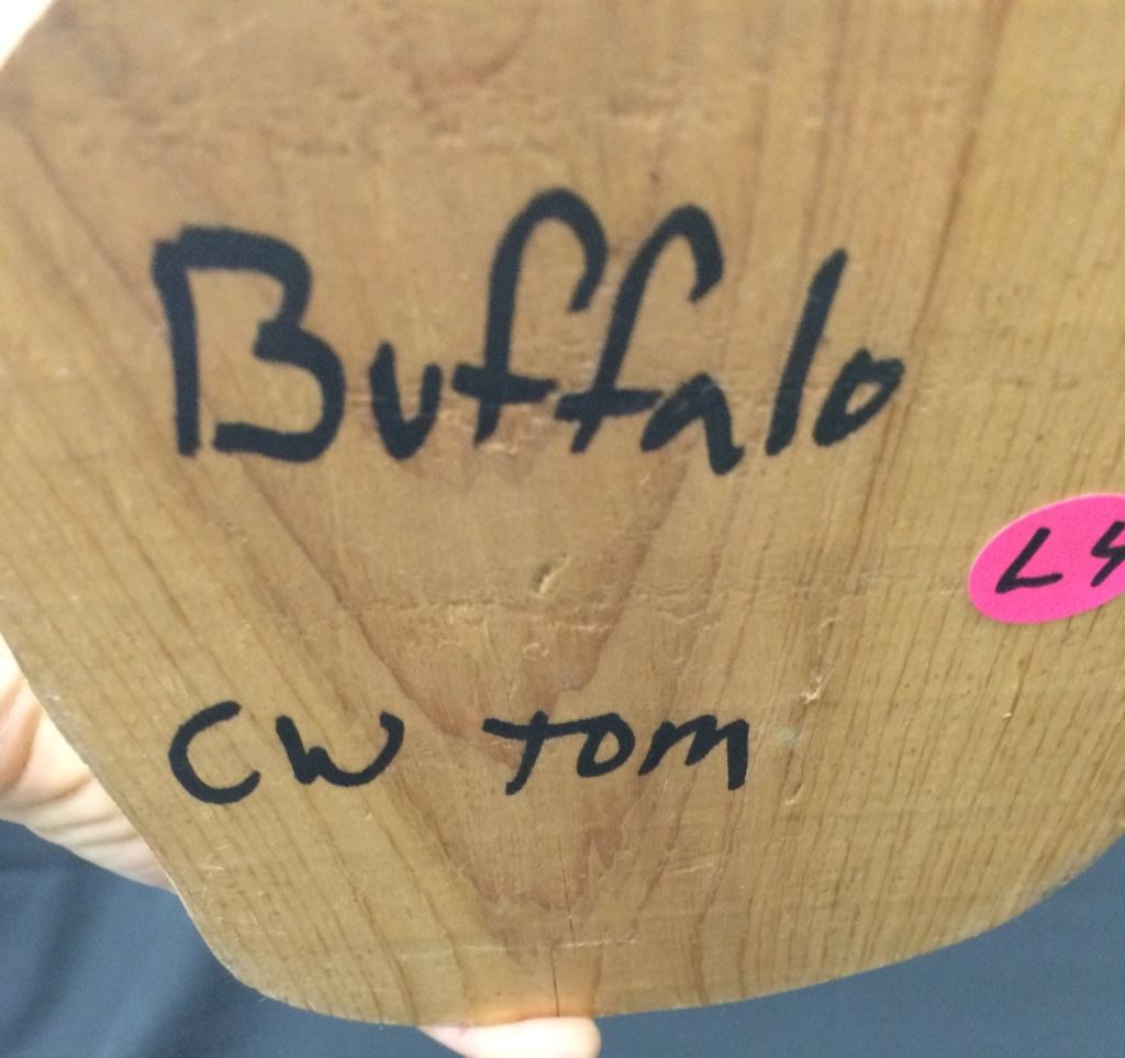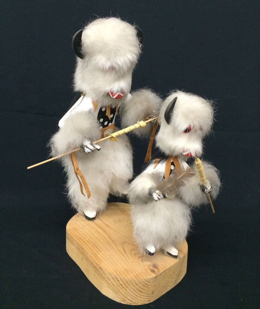This Navajo Kachina doll is a double buffalo dancer and the buffalo head masks come off! Unique! It is signed CW Tom and stands 13” tall. In good condition.