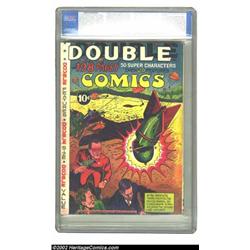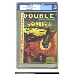 Double Comics #nn (Elliot, 1940) CGC VG 4.0 Cream to off-white pages. These cool giants are always interesting, since you never know what remaindered issues they will contain. They are often an amalgamation of stories from different companies like this one which contains the interiors of Pep Comics #16 and King Comics #61. Overstreet 2002 GD 2.0 value = $227, FN 6.0 value = $681. Important notice: We expect to be auctioning lots at the rate of 200-250 per hour. Sometimes eBay Premier live bid software cannot keep up with that pace, so we strongly recommend that you place a realistic proxy bid now as insurance to avoid disappointment. Also please note that all Heritage/CAA lots purchased through eBay Premier carry a 20% Buyer's Premium. Please make sure you read the Terms and Conditions.
