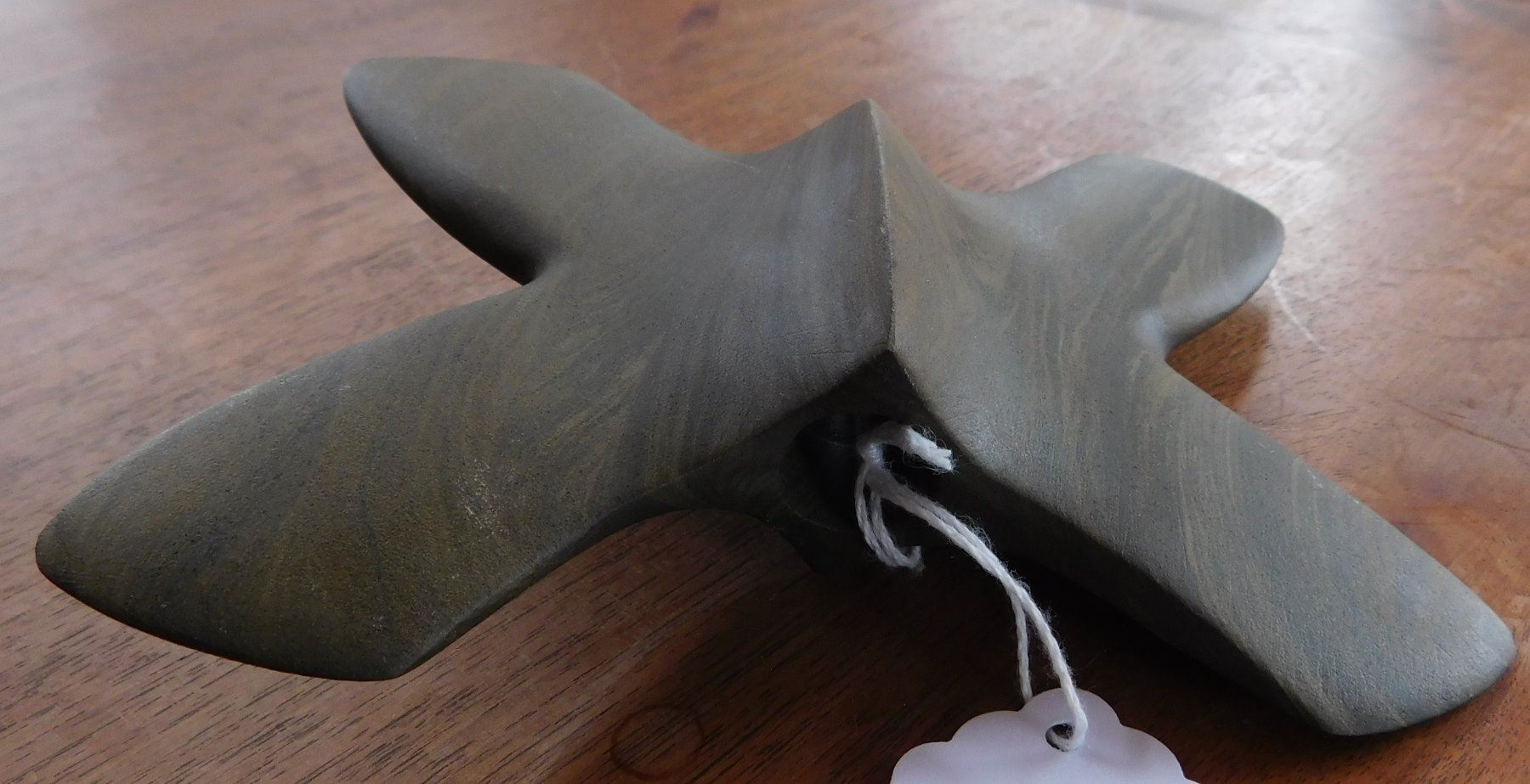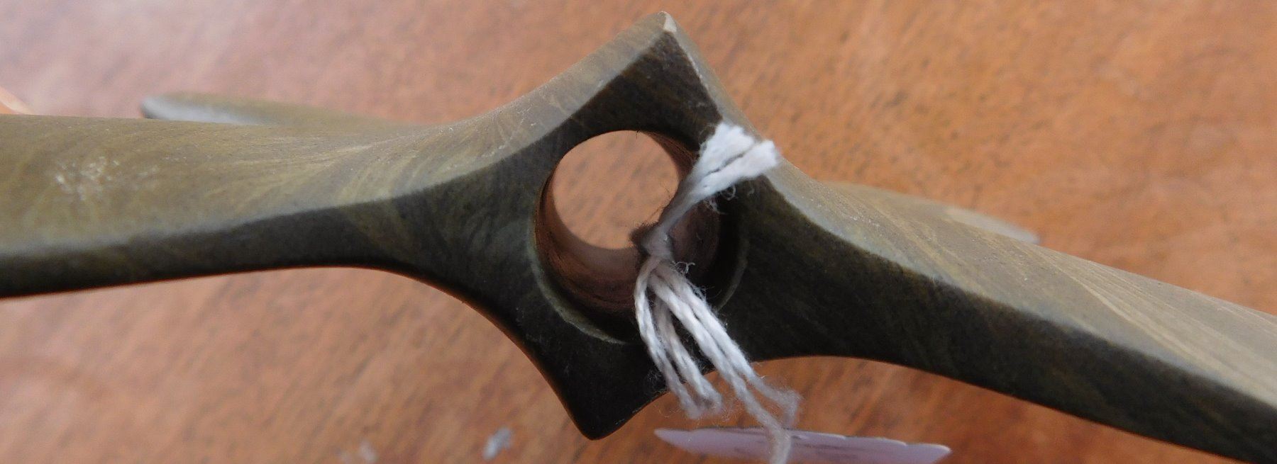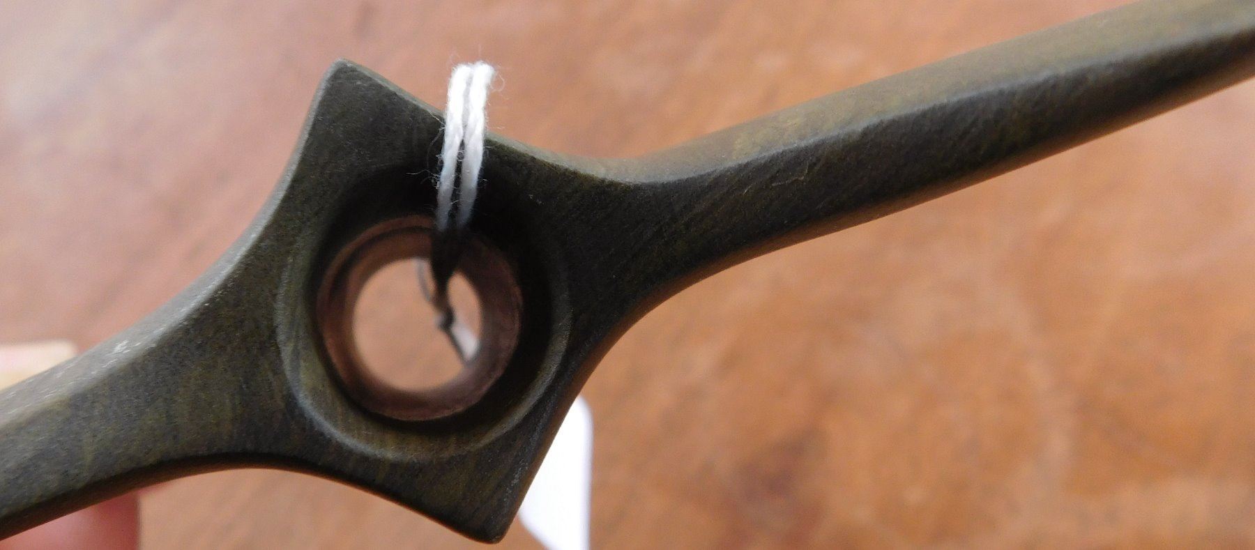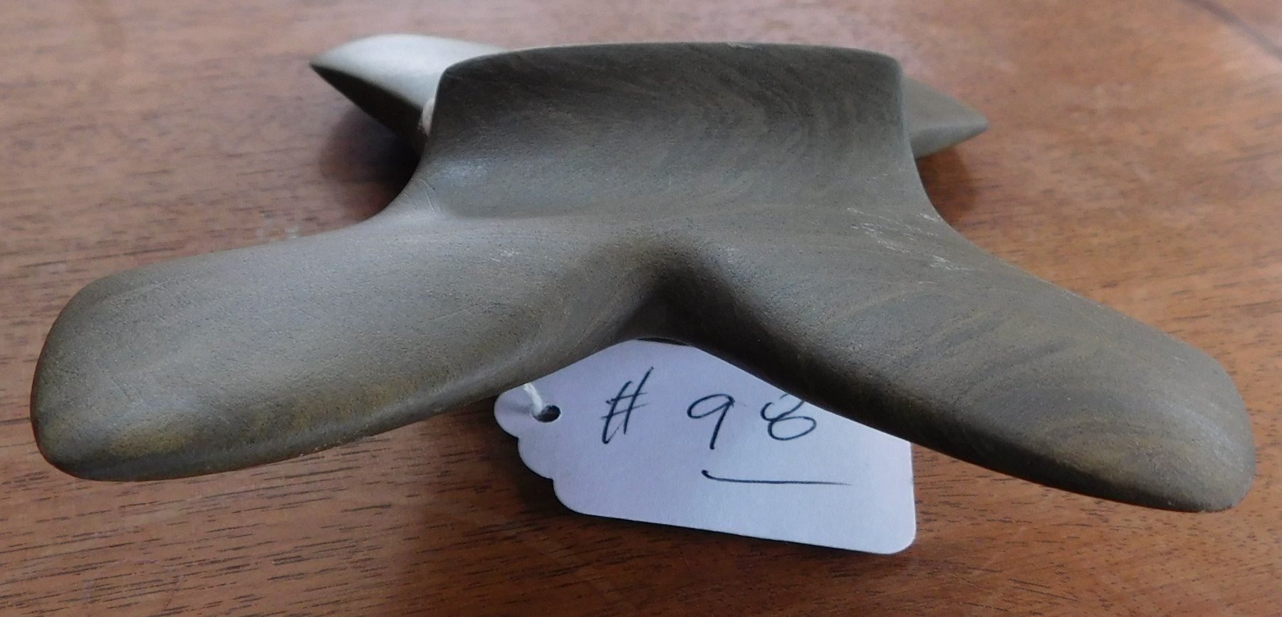 Double-Crescent Bannerstone, pre-historic item. Made of banded slate, the item measures 5" x 3 3/4" x 1 1/4". Wabash County, Indiana. From an old, 1960s California collection. Condition: Good, minor wear, see images. Shipping: $23.50 w/insurance and signature.