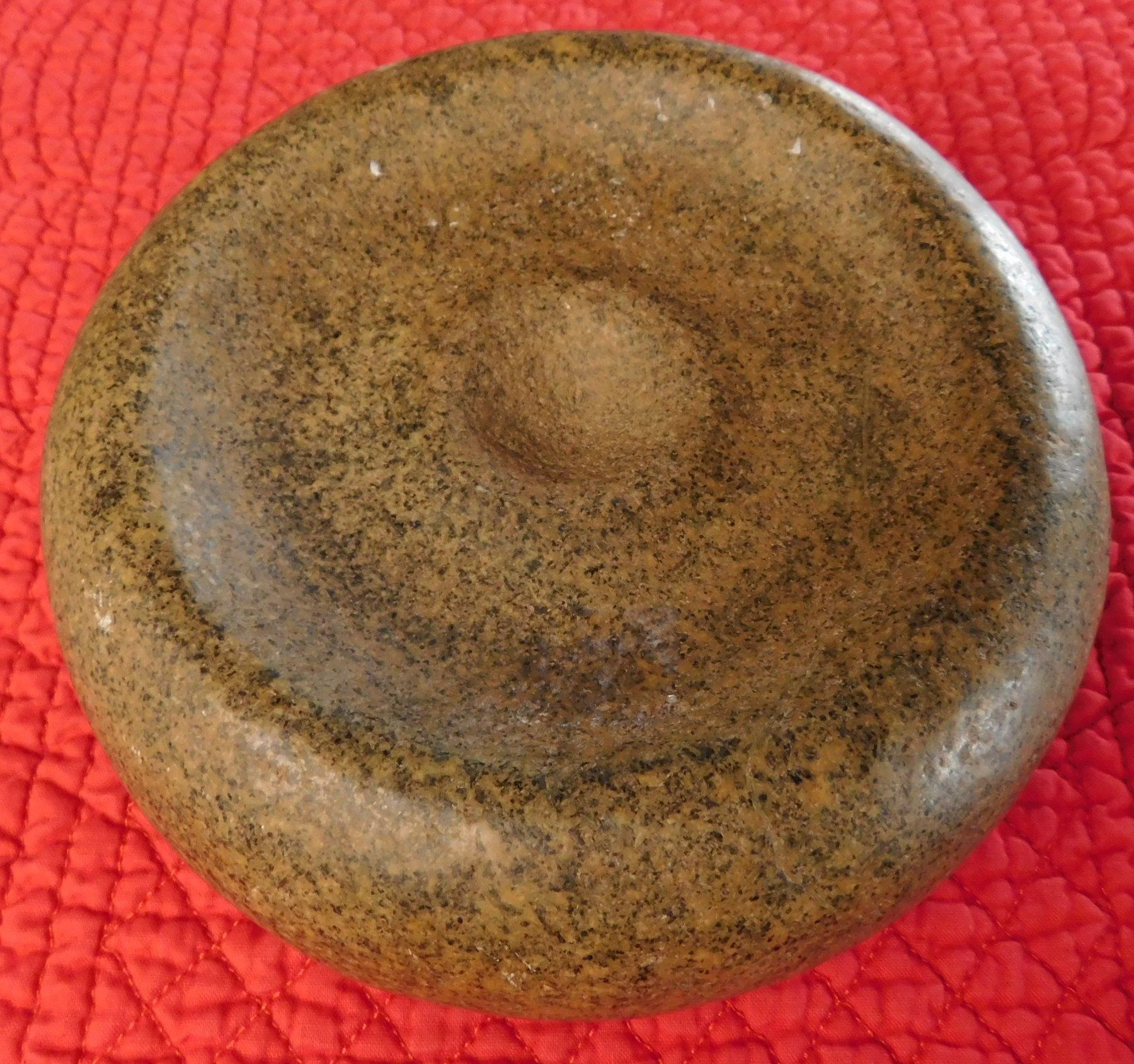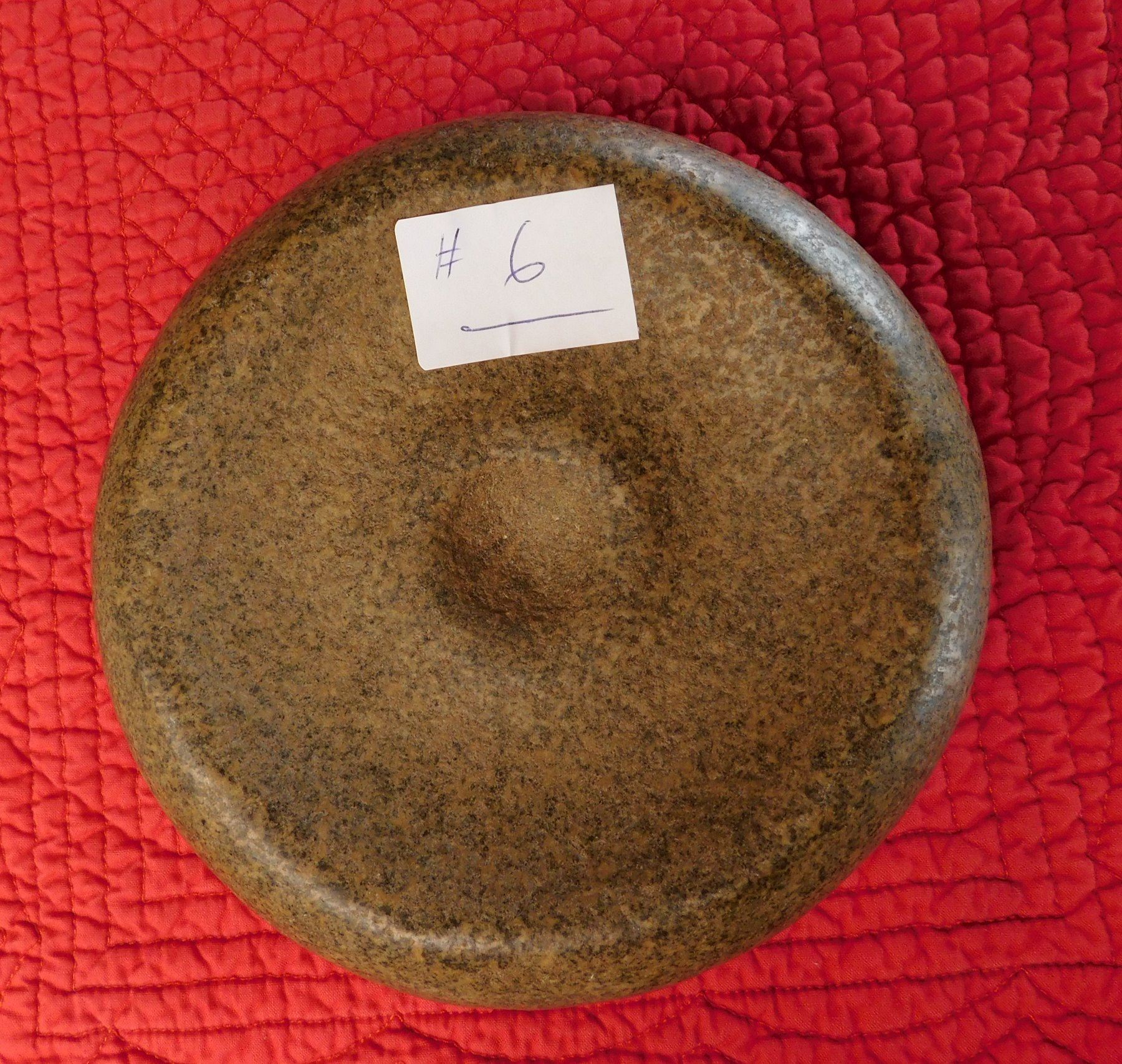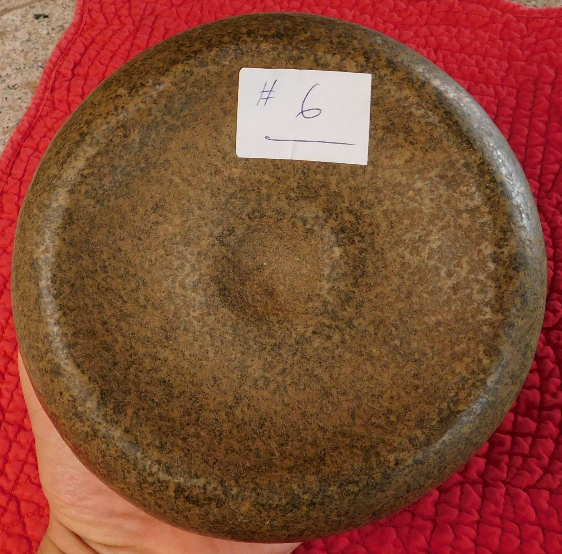 Double-Cup Discoidal, pre-historic item. Made of granite, the item measures 6" x 2 1/4". Knoxville, Tennessee. Large discoidal, very fine. Condition: Good, see images. Shipping: $26.50 w/insurance and signature, due to value.