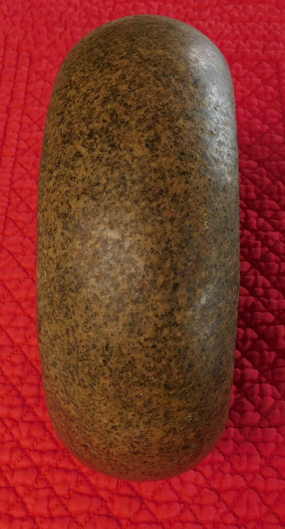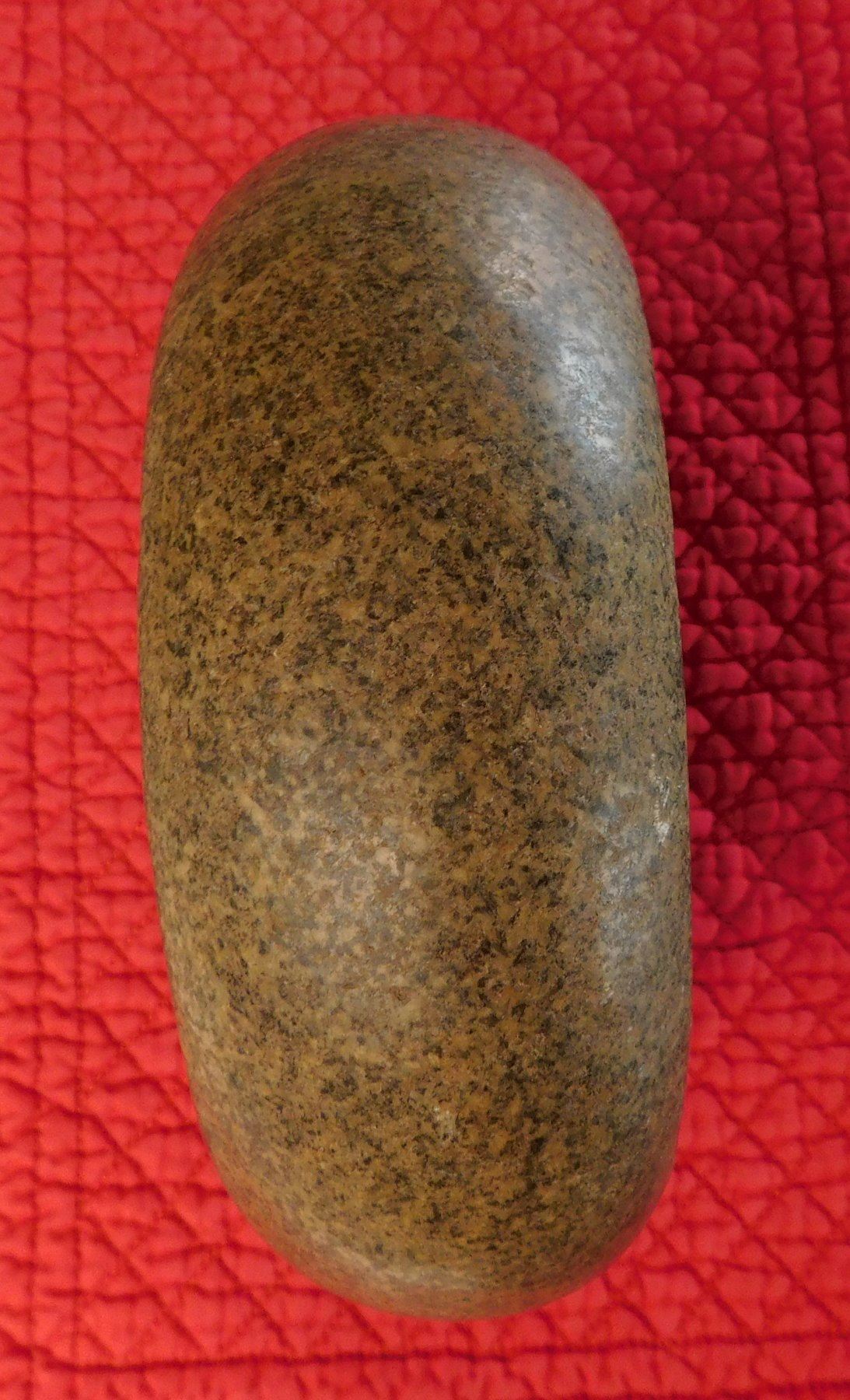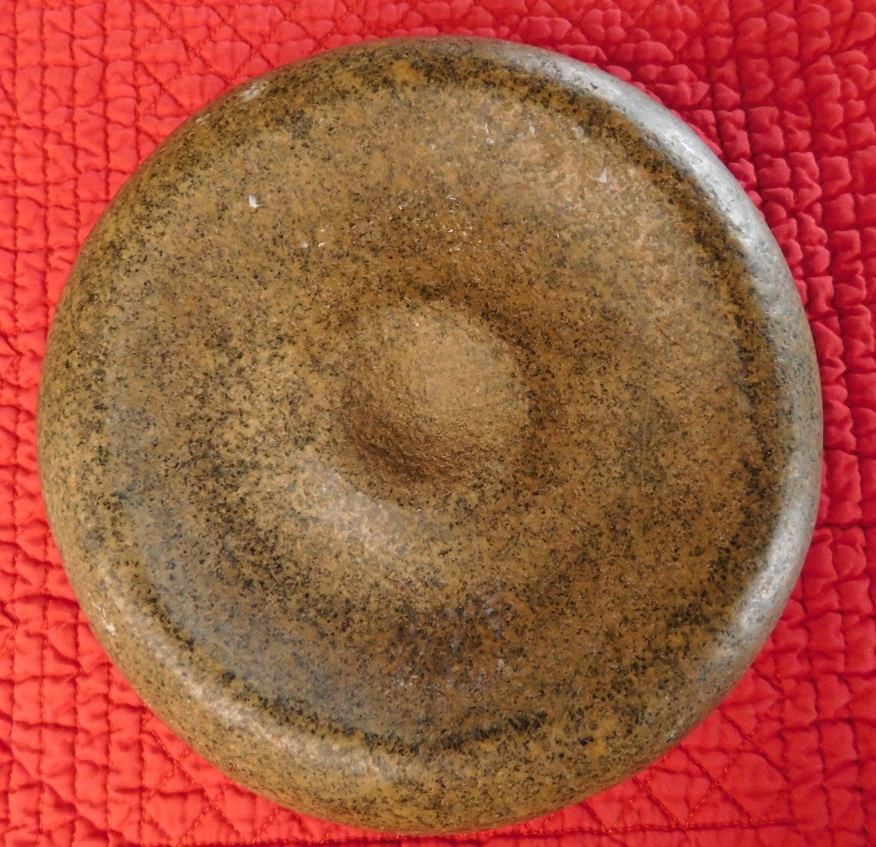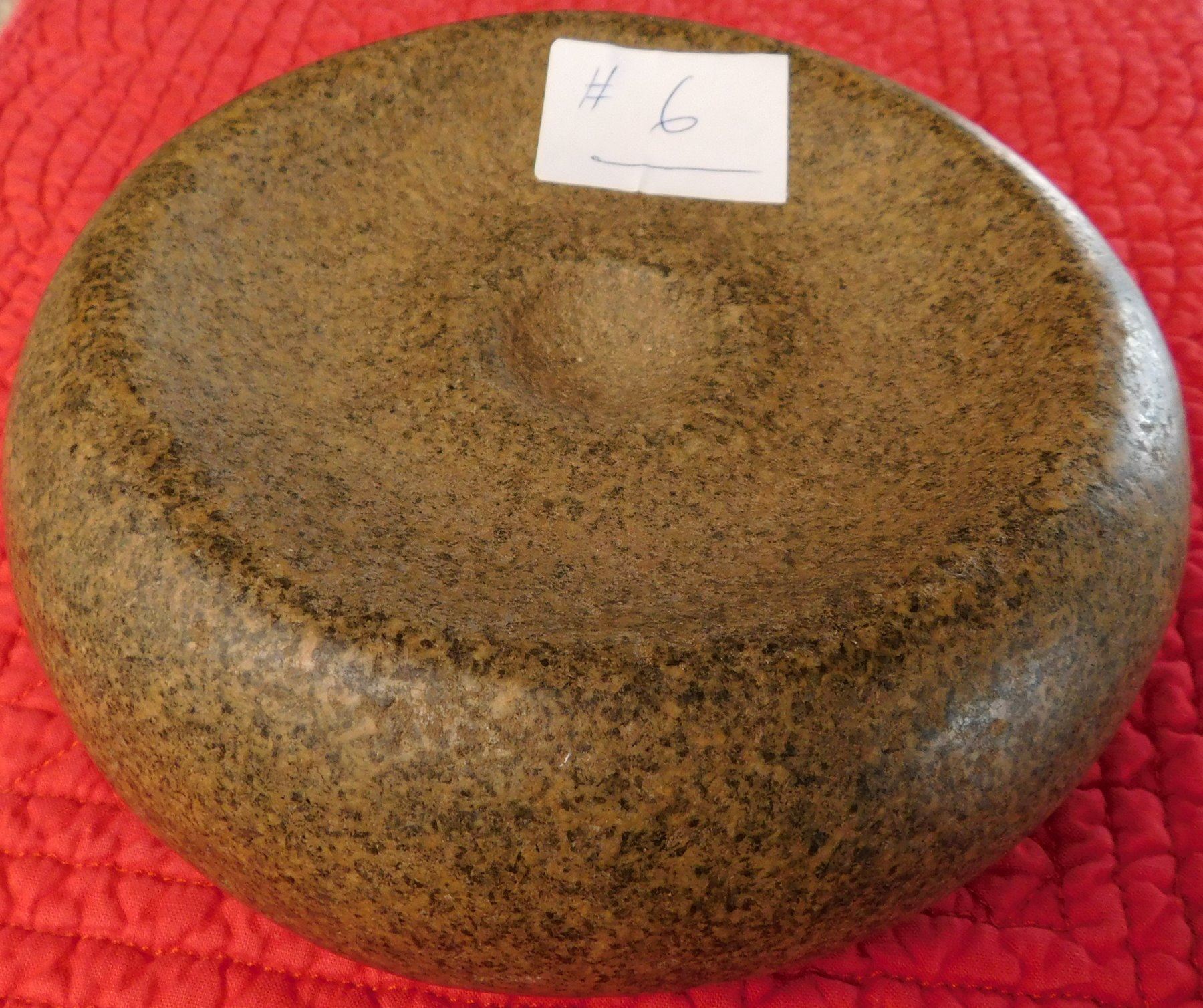 Double-Cup Discoidal, pre-historic item. Made of granite, the item measures 6" x 2 1/4". Knoxville, Tennessee. Large discoidal, very fine. Condition: Good, see images. Shipping: $26.50 w/insurance and signature, due to value.